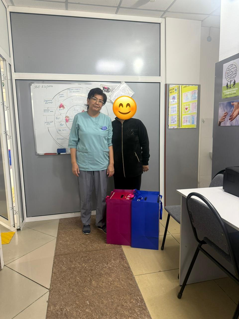 2025 жылдың 14 тамызында Тараз қаласының №5 қалалық емханасының әлеуметтік қызметкері Омарова М. Ж. еріктілермен бірге көпбалалы отбасылар санаты бойынша емхана қызметкерлеріне мектеп керек-жарақтары бар рюкзактар табыстады. Балалардың ата-аналары отбасыларының назары мен қолдауына ризашылықтарын білдірді.