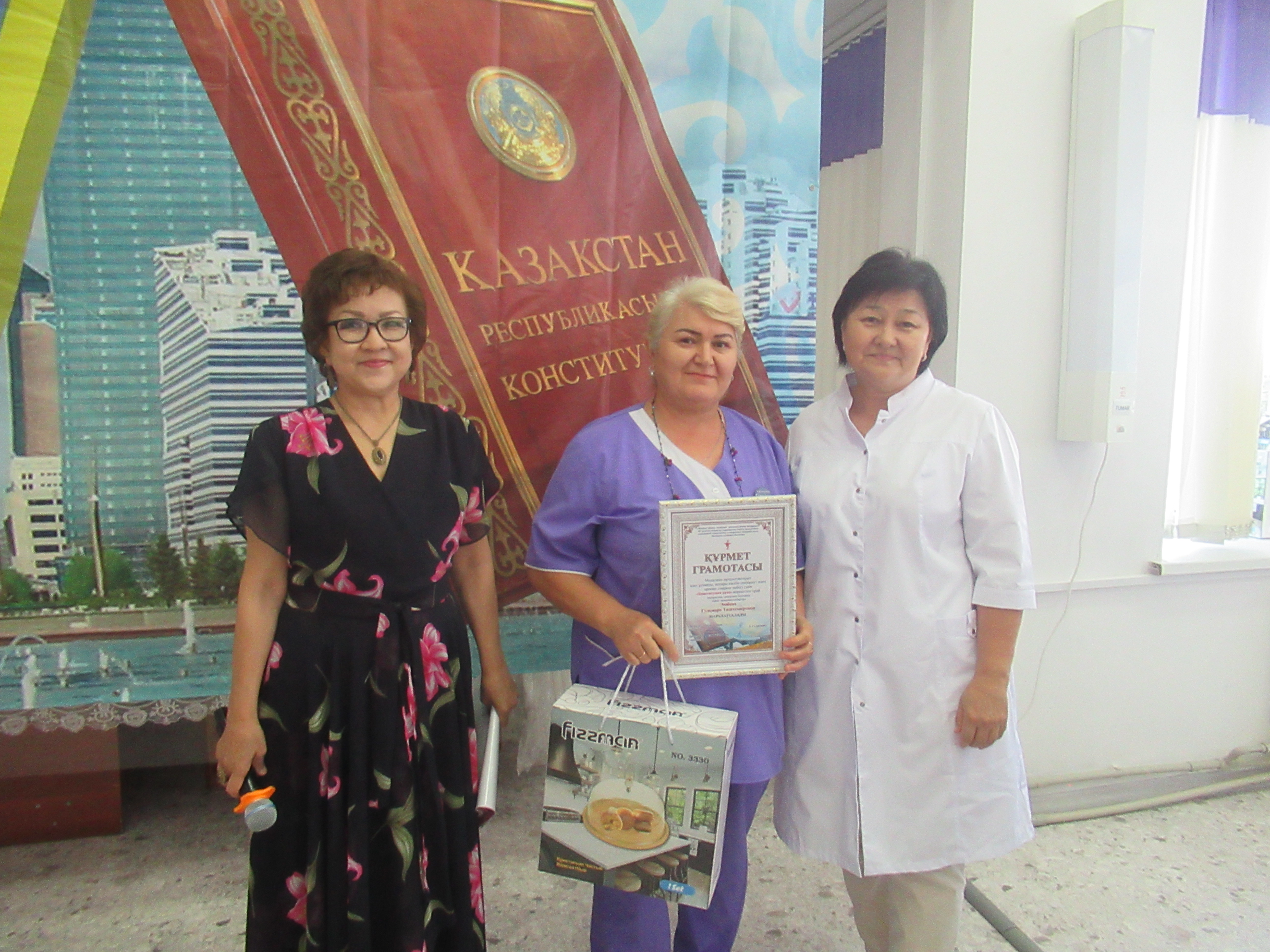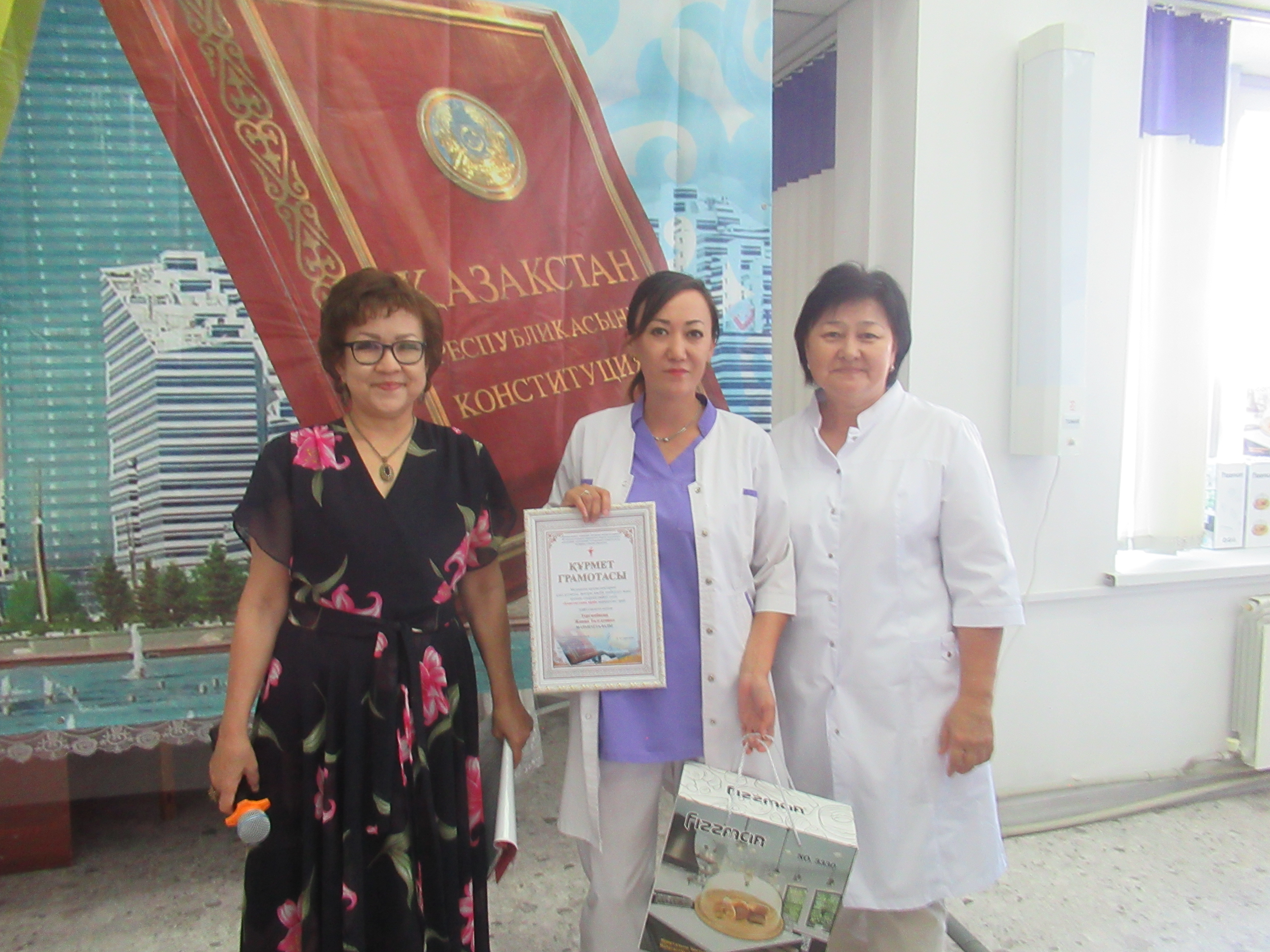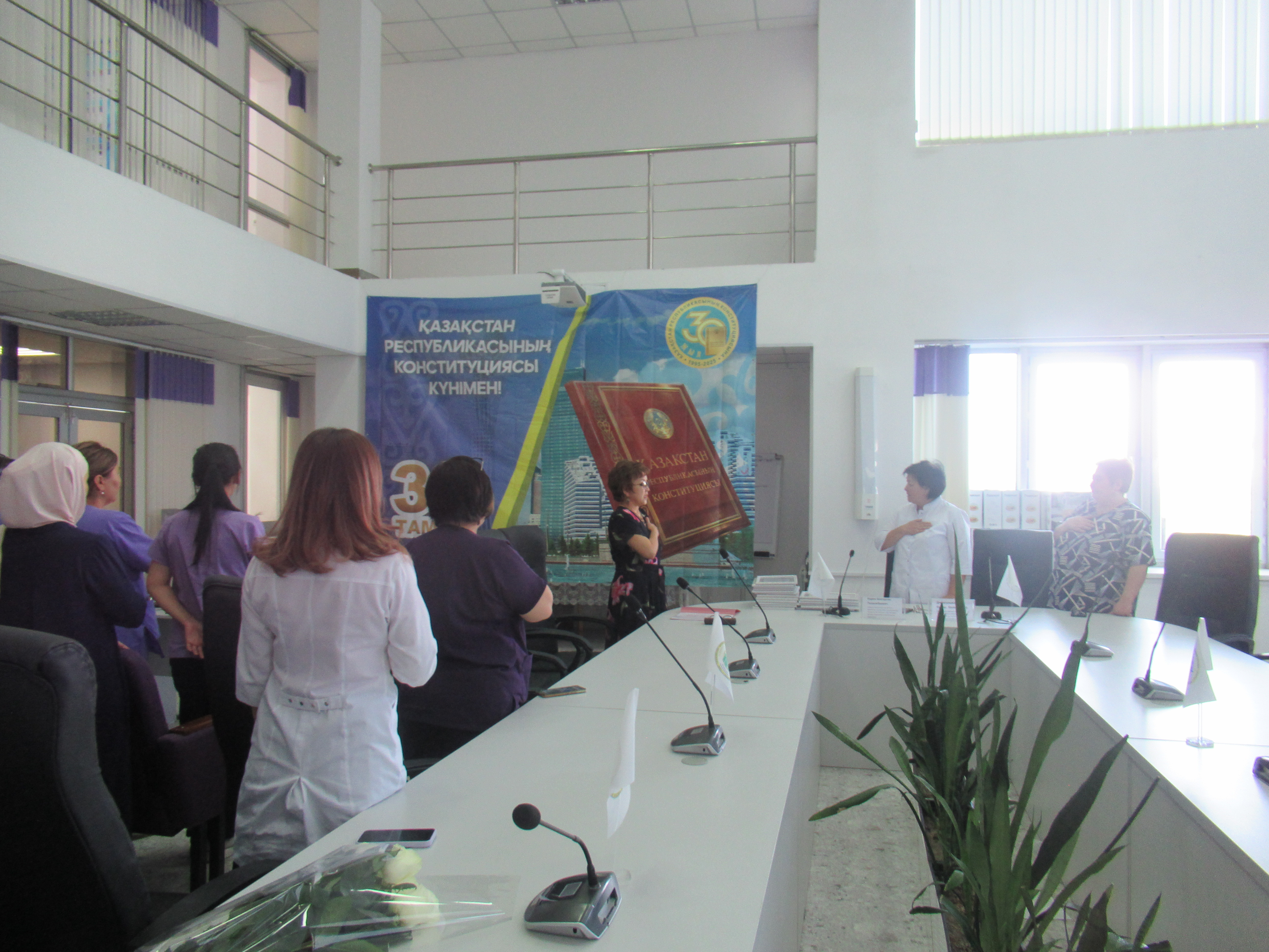 29 августа 2025 года в ГКП на ПХВ "Городской поликлинике №5" прошло торжественное мероприятие , посвященное Дню Конституции Республики Казахстан . Мероприятие началось с гимна Республики Казахстан. Перед коллективом с докладом о нашей независимой Республике, о исторических событиях принятия Конституции РК, о важности конституционных ценностей, на которых строится крепкая основа нашего общества, о принципах равенства перед законом и недопустимости привилегий, прописанных в Конституции, об активной роли гражданского общества, о противодействии коррупции, выступила заместитель главного врача по детству и родовспоможению Тулепбергенова Галима Алдабергеновна.