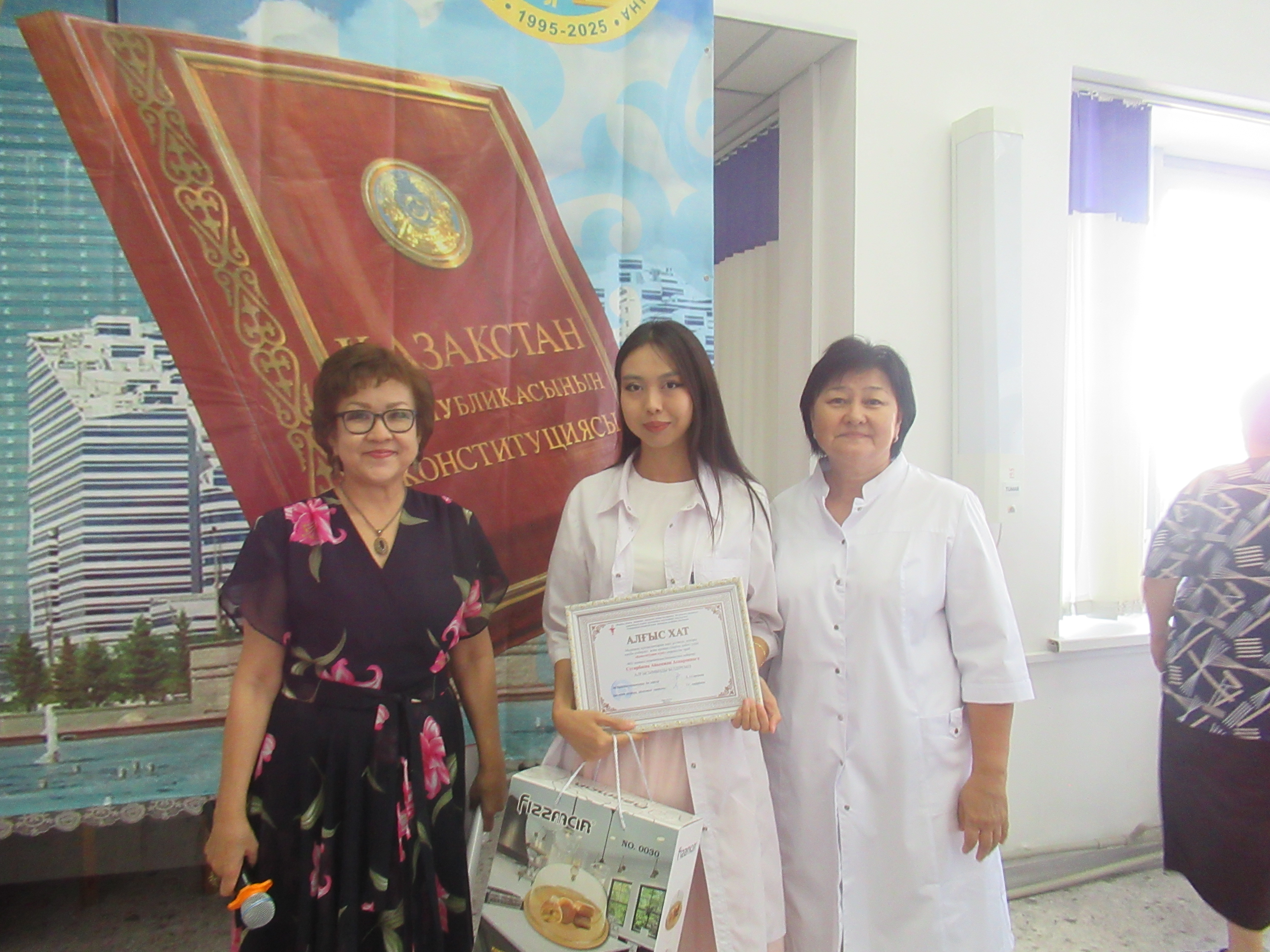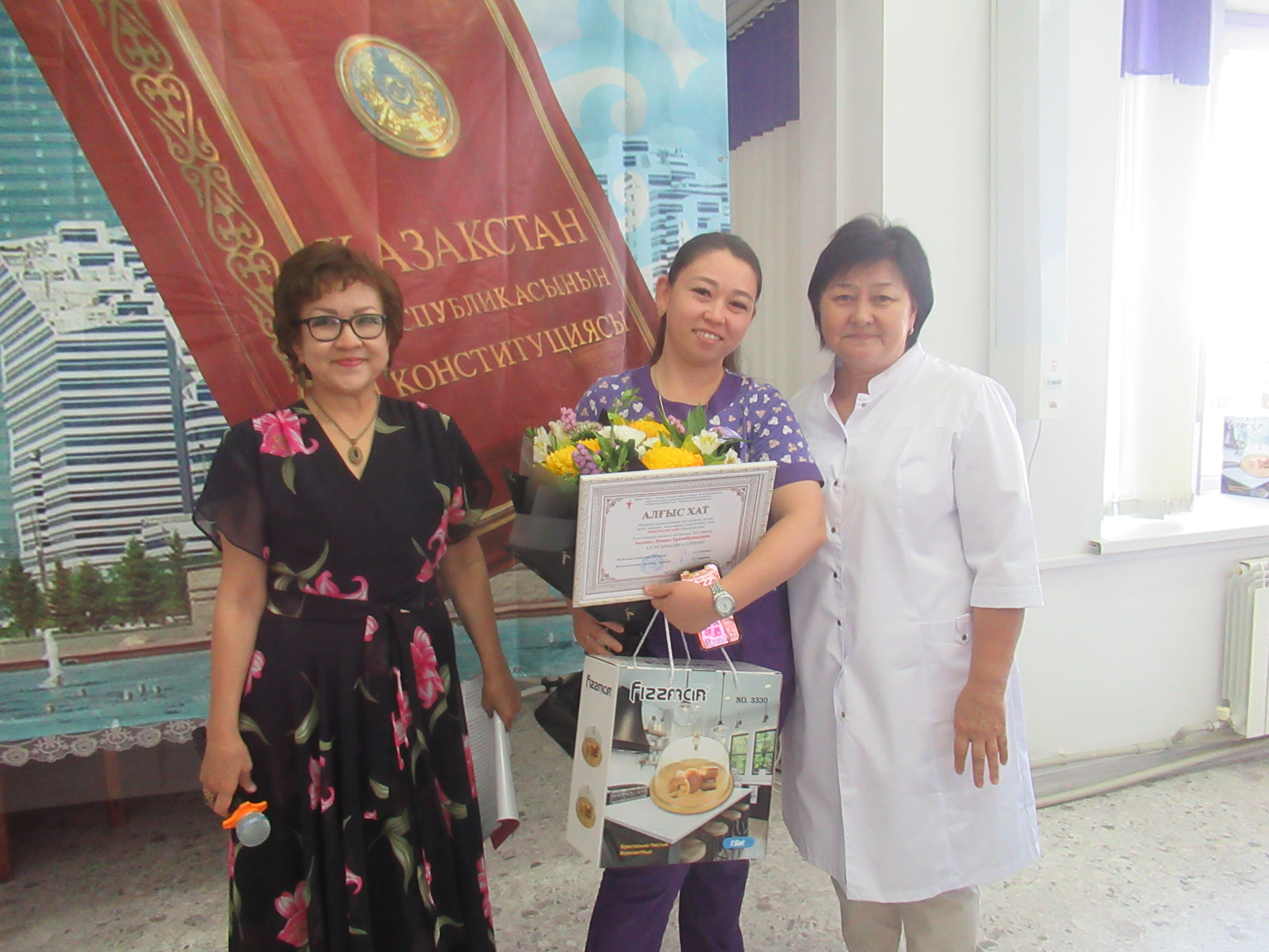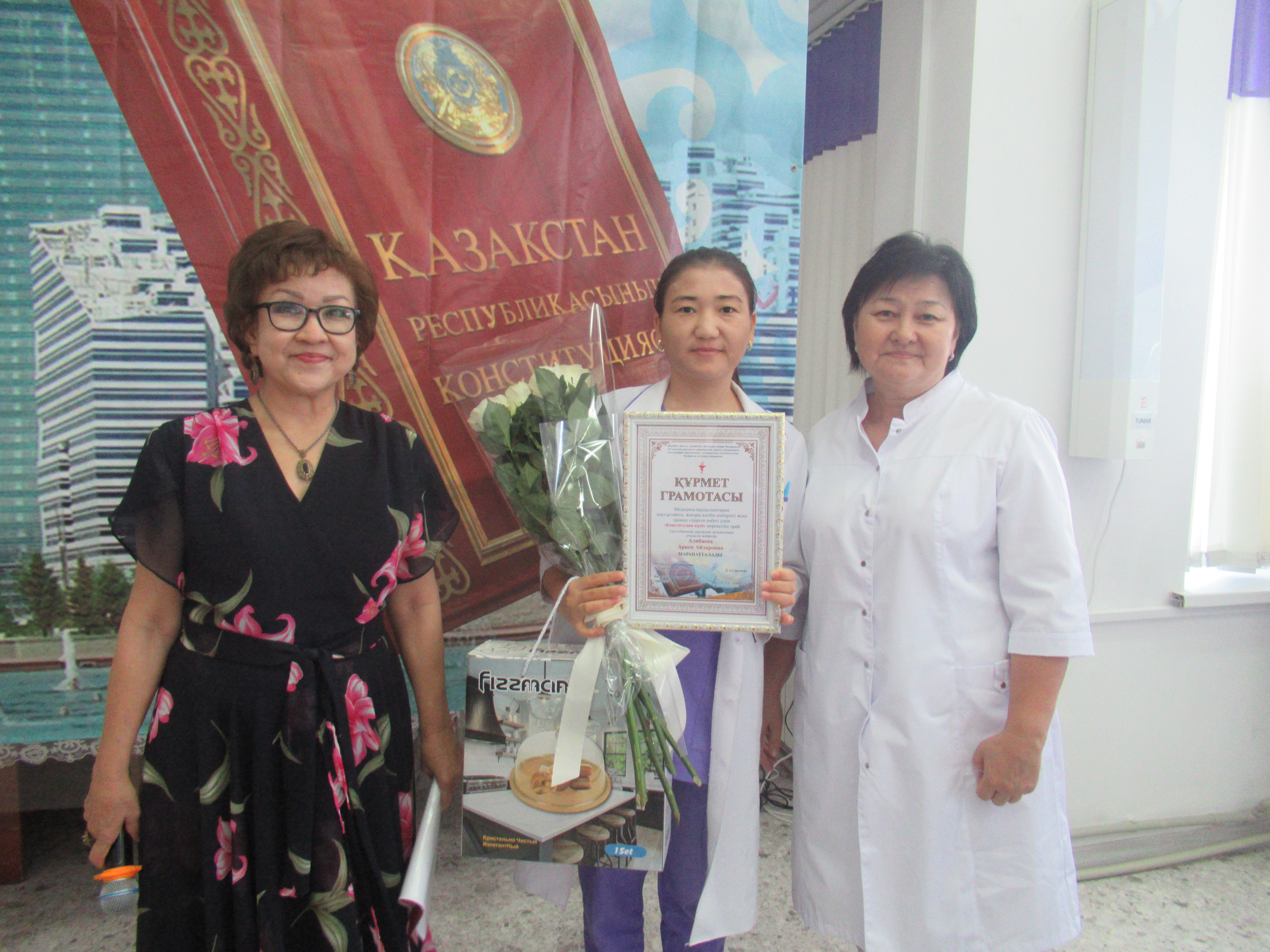 29 августа 2025 года в ГКП на ПХВ "Городской поликлинике №5" прошло торжественное мероприятие , посвященное Дню Конституции Республики Казахстан . Мероприятие началось с гимна Республики Казахстан. Перед коллективом с докладом о нашей независимой Республике, о исторических событиях принятия Конституции РК, о важности конституционных ценностей, на которых строится крепкая основа нашего общества, о принципах равенства перед законом и недопустимости привилегий, прописанных в Конституции, об активной роли гражданского общества, о противодействии коррупции, выступила заместитель главного врача по детству и родовспоможению Тулепбергенова Галима Алдабергеновна.