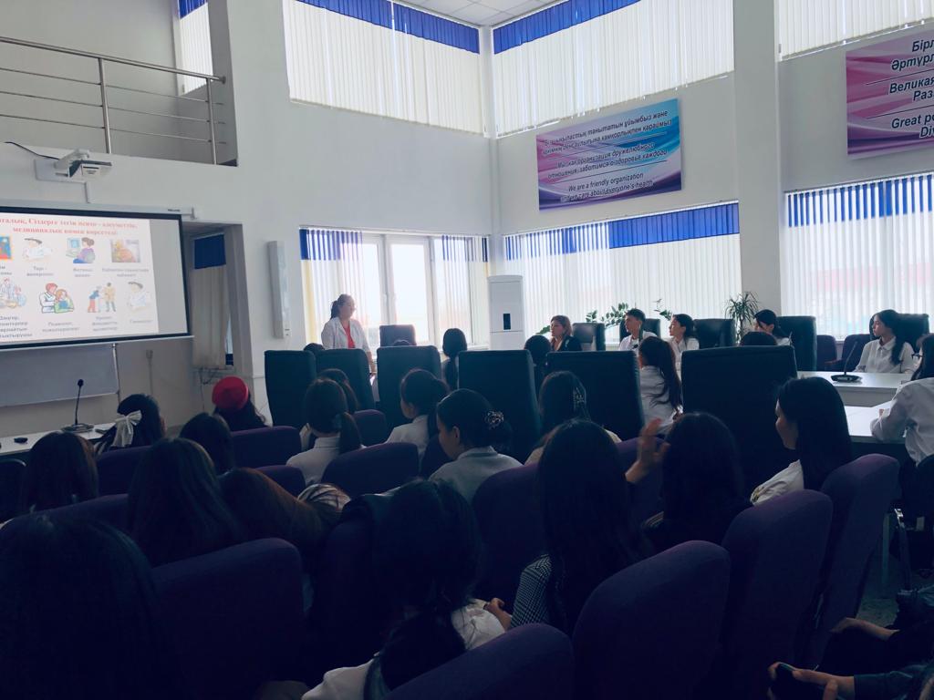 Специалистами МОЛОДЕЖНОГО ЦЕНТРА "ЖАСТАР" при городской поликлинике № 5 был проведен семинар на тему: "ОХРАНА РЕПРОДУКТИВНОСТИ И ПСИХОЛОГИЧЕСКОГО ЗДОРОВЬЯ ДЕВОЧЕК ПОДРОСТКОВ ". Были приглашены студенты Таразского Иновационного Многопрофильного колледжа. Врачом акушер-гинекологом- Рустенбековой А.Б. была предоставлена информация о РЕПРОДУКТИВНОМ ЗДОРОВЬЕ, ИППП, МЕТОДАХ КОНТРАЦЕПЦИИ И НЕЖЕЛАТЕЛЬНОЙ БЕРЕМЕННОСТИ. Медсестра школы здоровья- Ильясова С.К. объяснила подросткам о ПОЛЬЗЕ ПРАВИЛЬНОГО ПИТАНИЯ И ПИРАМИДЕ ПИТАНИЯ. Психолог- Жаркынбекова А.Т. провела с подростками анкетирование о ПРОФИЛАКТИКЕ СУИЦИДА. Подросткам была предоставлена врачебная консультация специалистами центра: психологом акушер-гинекологом урологом дерматологом юристом.
