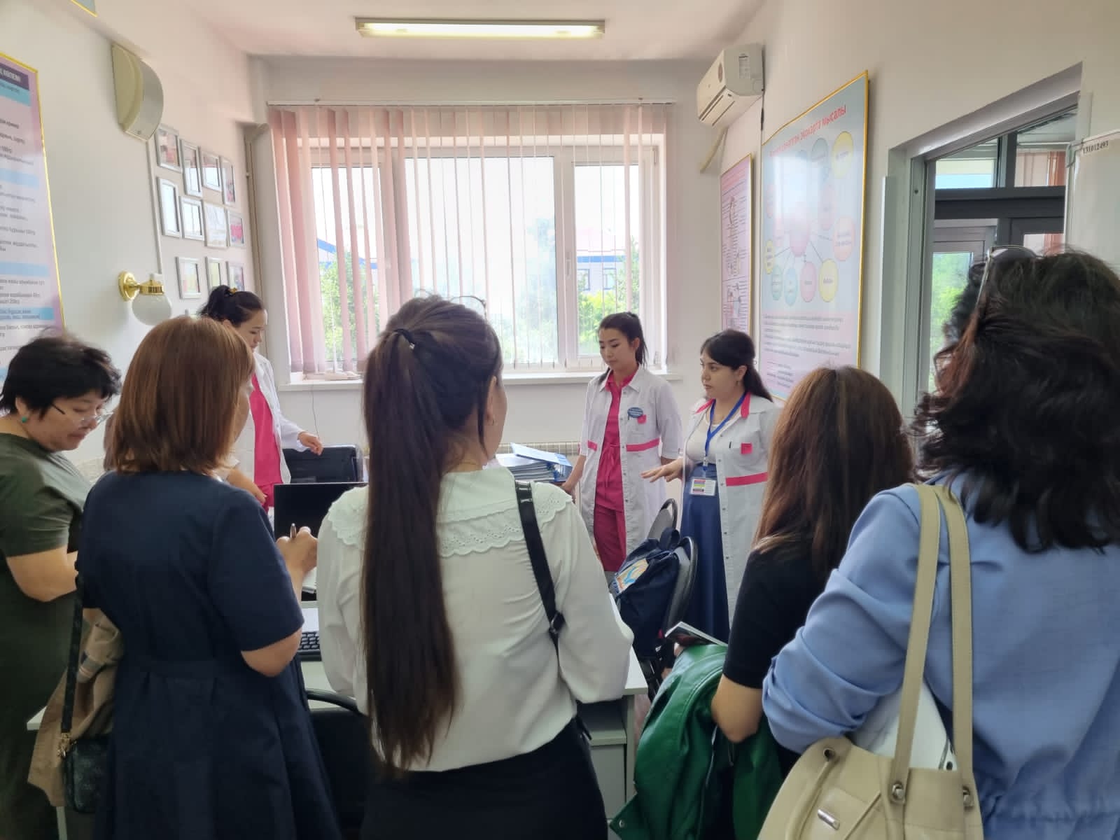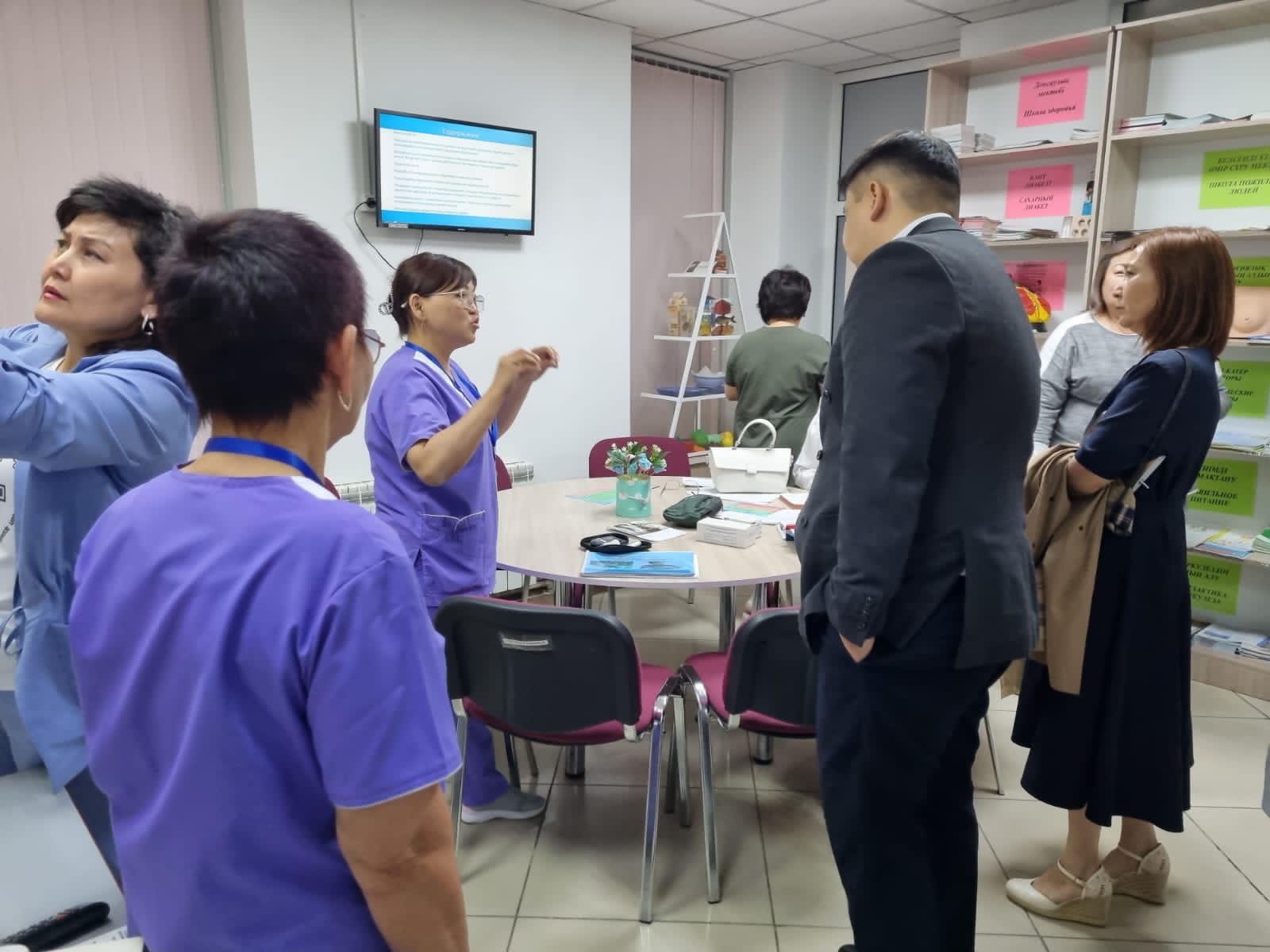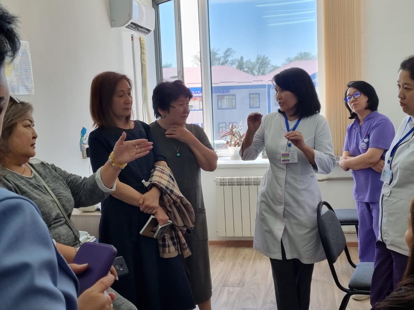 22 мая 2023 года на базе ГКП на ПХВ «Городской поликлиники №5» г.Тараз прошла встреча с представителями здравоохранения Атырауской и Восточно-Казахстанской областей. Главный врач поликлиники Сарсенова Динара Амангельдиевна рассказала представителям здравоохранения Атырауской и Восточно-Казахстанской областей о работе центра и структуре спецслужб на основе отзывов жителей, а также представила новшества в оказании учреждением первичной медико-санитарной помощи населению. Представителей здравоохранения Атырауской и Восточно-Казахстанской областей ознакомили с работой центра передового опыта на базе городской поликлиники N5. Они были проинформированы о первых шагах реализации пилотного проекта механизма информированного общественного мониторинга и обратной связи, а также были ознакомлены с реализуемыми проектами, с внедрением основы персонального приема медицинских сестер, универсальной прогрессивной модели патронажа, теоретической и практической работы социальных работников, психологов, школы здоровья.