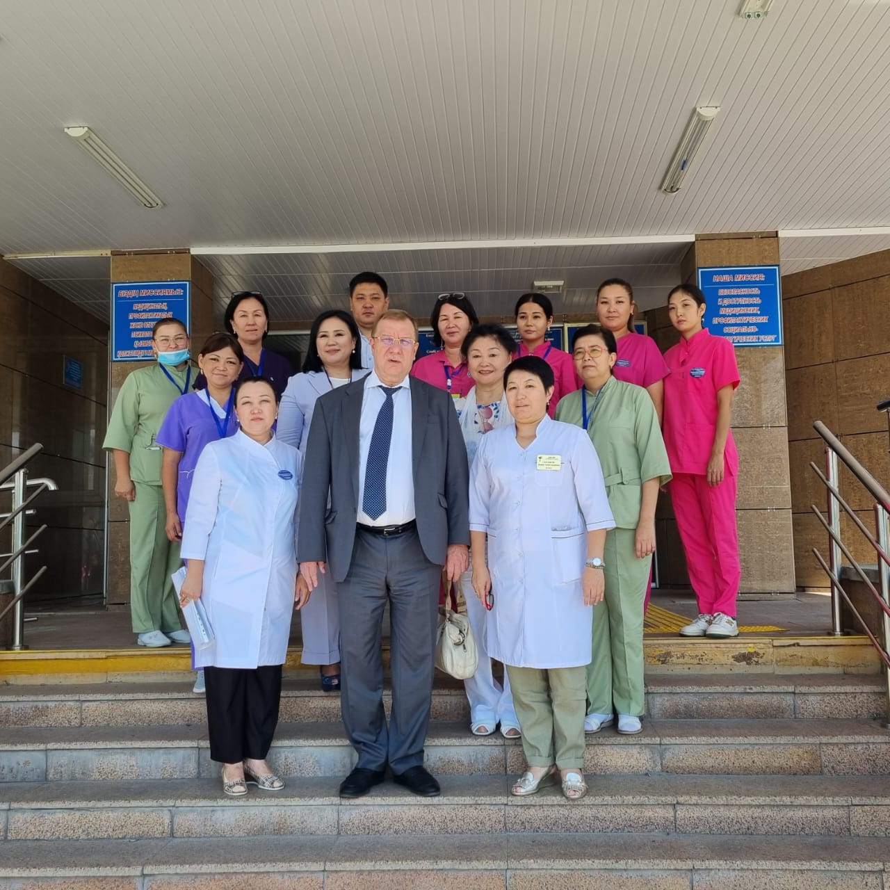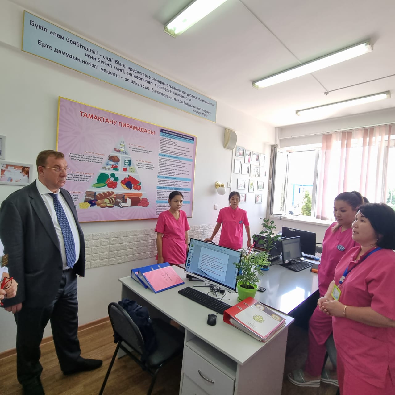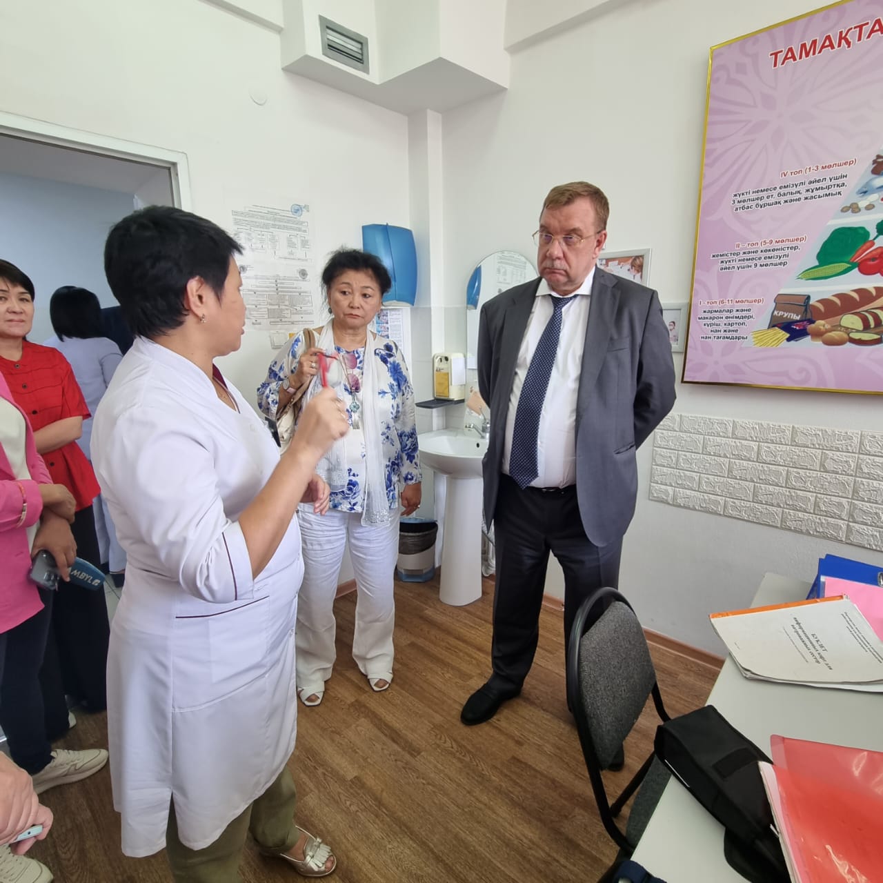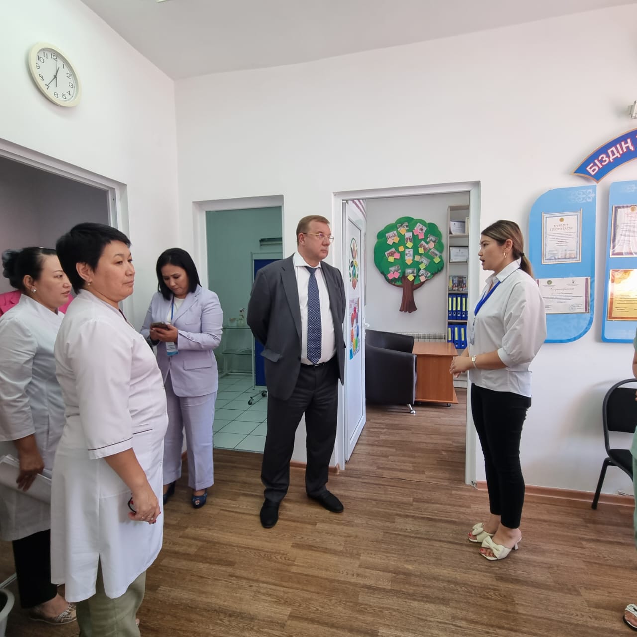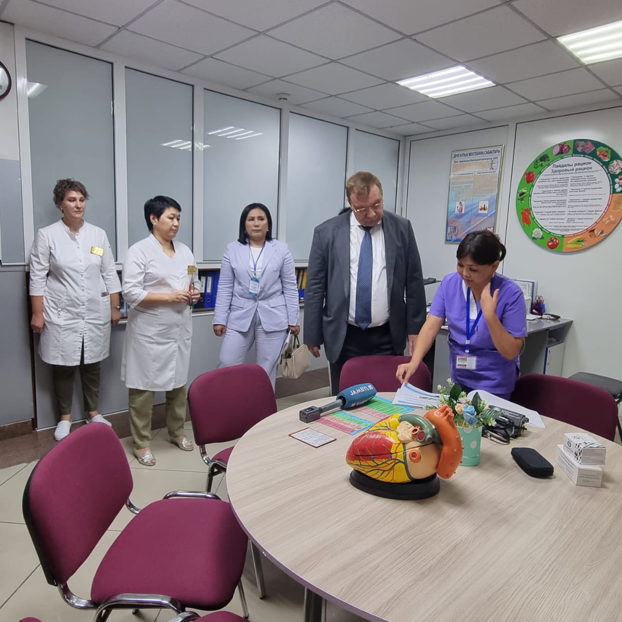 11 августа 2023 года на базе ГКП на ПХВ «Городской поликлиники №5» г.Тараз прошла встреча с Вице-министром здравоохранения РК Дудником В.Ю., руководителем управления здравоохранения акимата Жамбылской области Оспановой Ж.М., председателем Правления Национальной Ассоциации «Primary Health Care» Абзаловой Р.А..