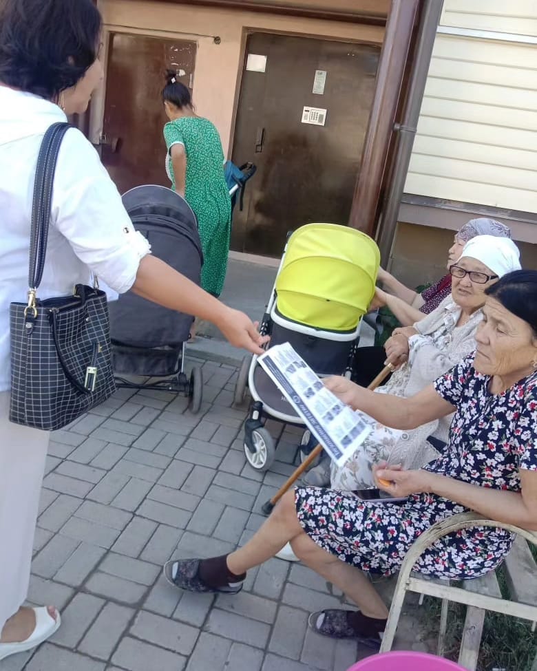 2023 жылдың 24 тамыз күні әмбебап прогрессивті патронаж үлгілерінің супервайзері Сарыпбекова Айнур Адилбаевна, әмбебап прогрессивті патронаж үлгілерінің мейіргерлері Амирова Динара, Джумабекова Молдир, әлеуметтік қызметкер Базарова Диана №5 қалалық емханаға қарасты 15 мөлтек ауданы тұрғындары арасында «Балаға қауіпсіз орта қалыптастыру» тақырыбында сход «акция» өткізілді, түсініктіру жұмыстары жүргізілді, ақпараттар мен сұрақтарына жауап беріп, буклеттер таратылды.