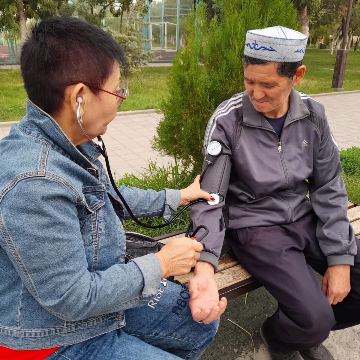 Медсестра кабинета здорового образа жизни городской поликлиники №5 Клиева Жамыл Керимбаевна каждый вторник проводит утреннюю гимнастику для пожилых людей в парке здоровья, измеряет артериальное давление, обучает здоровому образу жизни и правильному питанию.