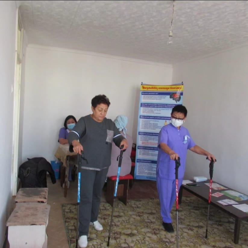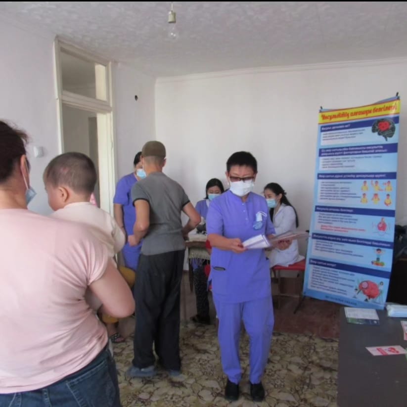 2023 жылдың 30 қазан күні «Дүниежүзілік инсультке қарсы күрес күніне» №5 қалалық емханаға қарасты жатақхана тұрғындары арасында №1 отбасылық дәрігерлік орталығының дәрігері Ж.И.Таубай, скрининг мейіргері К.М.Нартбаева және салауатты өмір салтын насихаттау бөлмесінің мейіргері Ж.К.Клиева сход «акция» өткізді, артериялық қан қысымдарың өлшеді, скринингтік тексеру жүргізді, скандинавиялық таяқшалармен жүруді үйретті, ақпараттар мен сұрақтарына жауап берді, буклеттер таратылды.