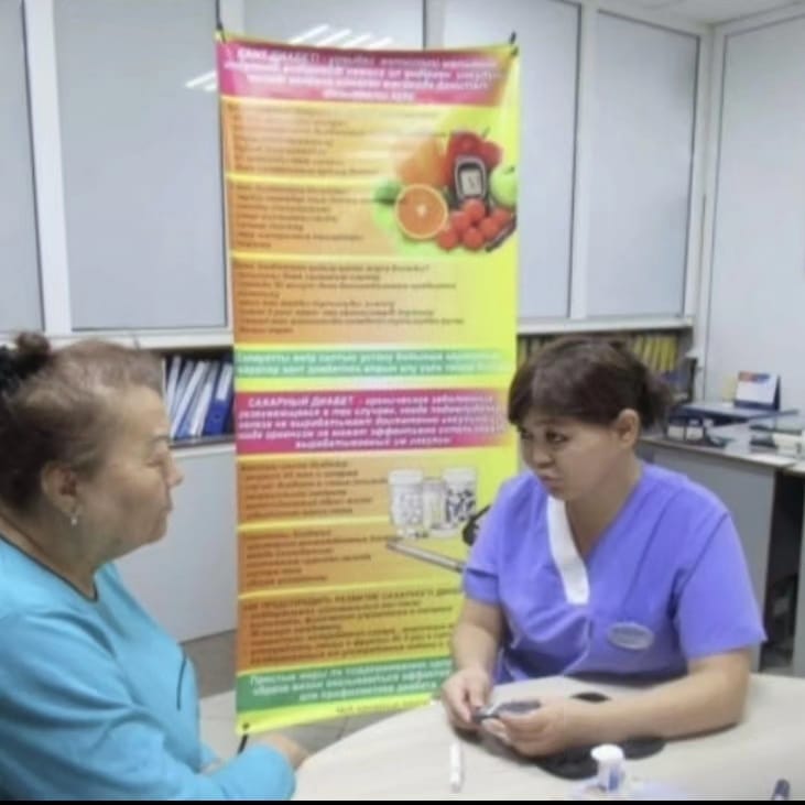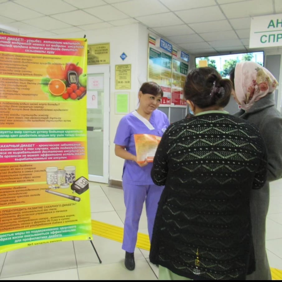 2023 жылдың 14 қараша күні №5 қалалық емханада «Дүниежүзілік қант диабетімен күрес күніне» эндокринолог дәрігері Э.Т.Кумекова, денсаулық мектебінің мейіргері С.К.Ильясова тұрғындар мен медицина қызметкерлері арасында дөңгелек үстөл өткізді, сұрақтарға жауап берді, буклеттер таратылды