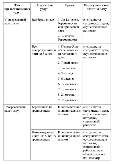 Универсальная модель – это охват патронажным наблюдением всех детей раннего возраста, с обязательным посещением каждого ребенка в определенные возрастные периоды.
