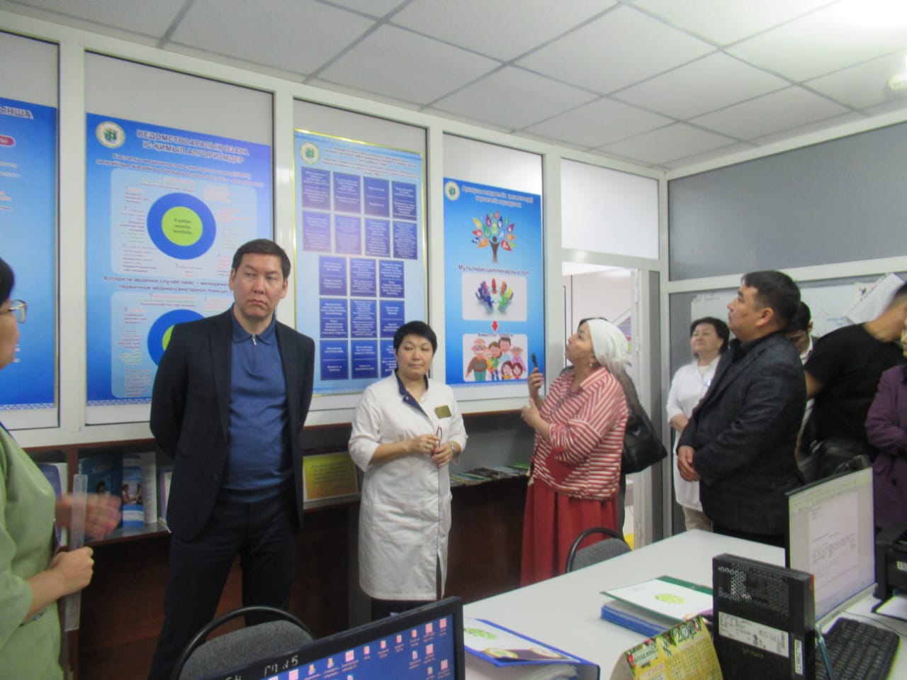 Проинформированы о первых шагах реализации пилотного проекта «Механизма информированного общественного мониторинга и обратной связи», а также были ознакомлены с реализуемыми проектами, с внедрением основы персонального приема медицинских сестер, универсальной прогрессивной модели патронажа, теоретической и практической работы социальных работников, психологов, школы здоровья.