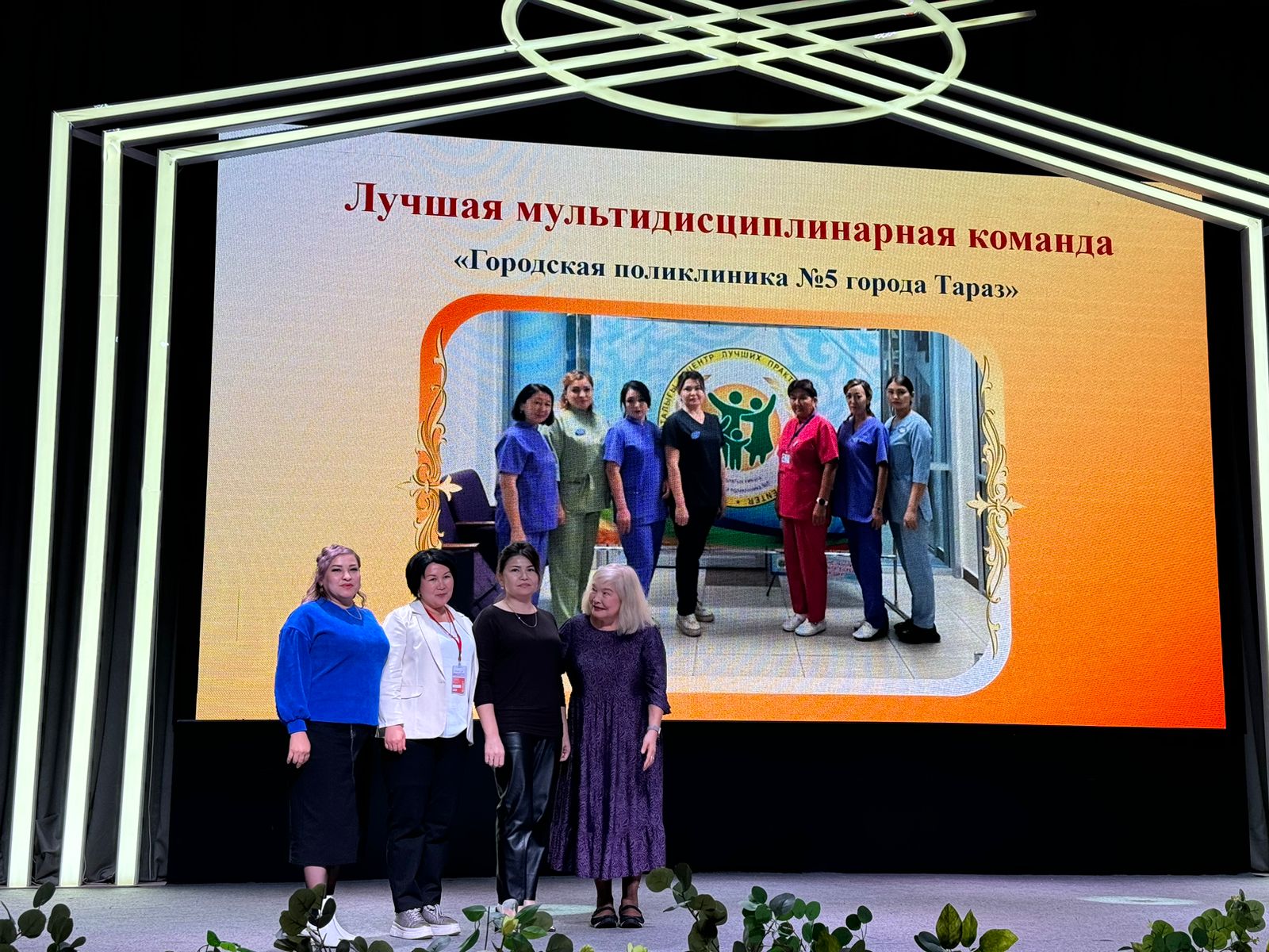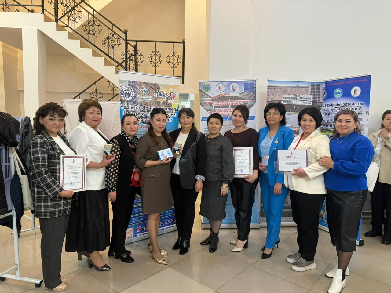 2) Семейный врач: Джумагулова Перизат Джанузаковна , семейные медсестры: Мусабек Шырайлым Сериковна, Султанбаева Мейрамкул, Балтабаева Карашаш Амановна, социальный работник: Базарова Диана Рашидовна, психолог: Жаркимбекова Акерке Талгатовна, акушерка: Тургинбекова Жанна Талгатовна награждены дипломом в номинации « Лучшая мультидисциплинарная команда».