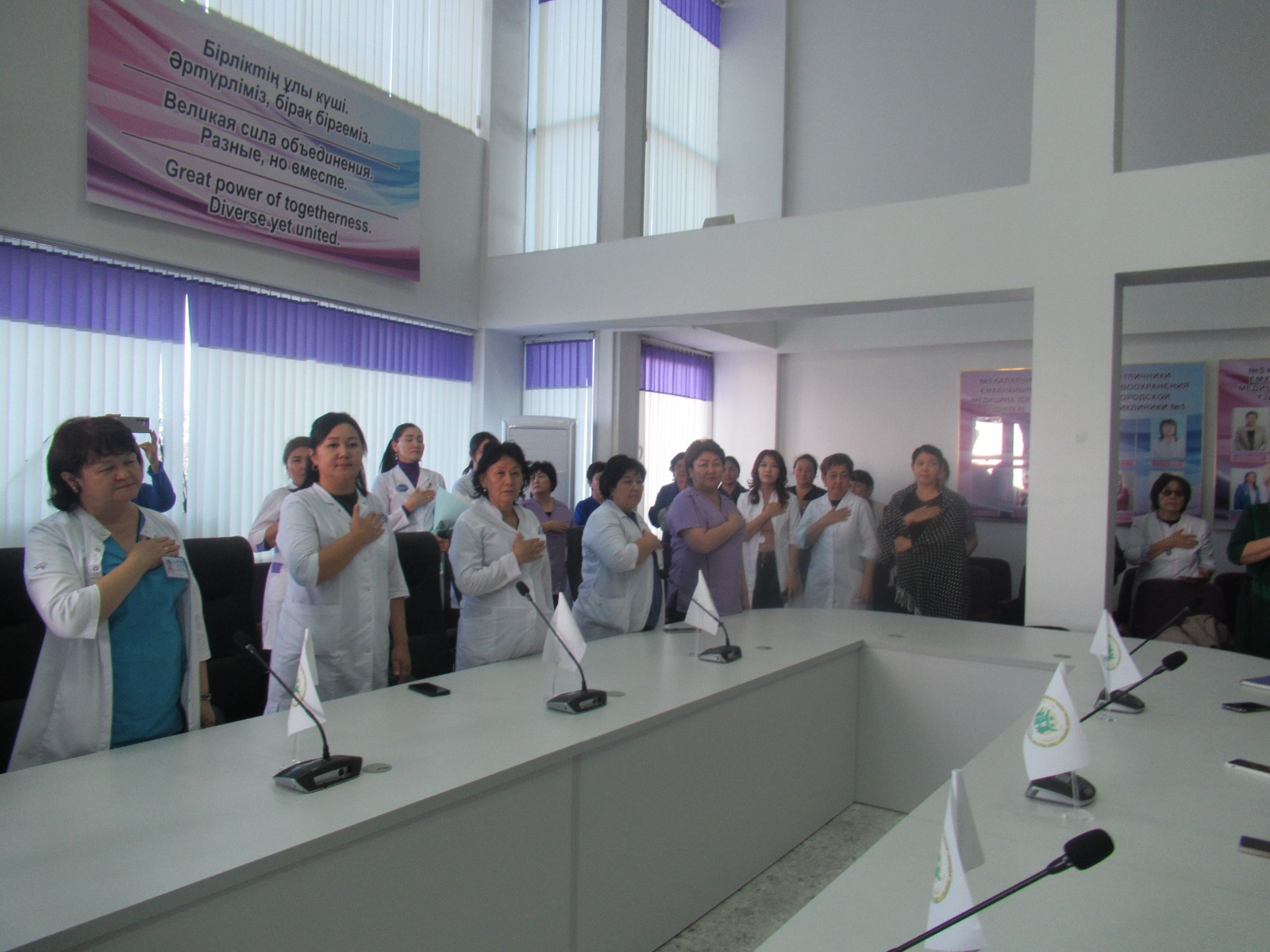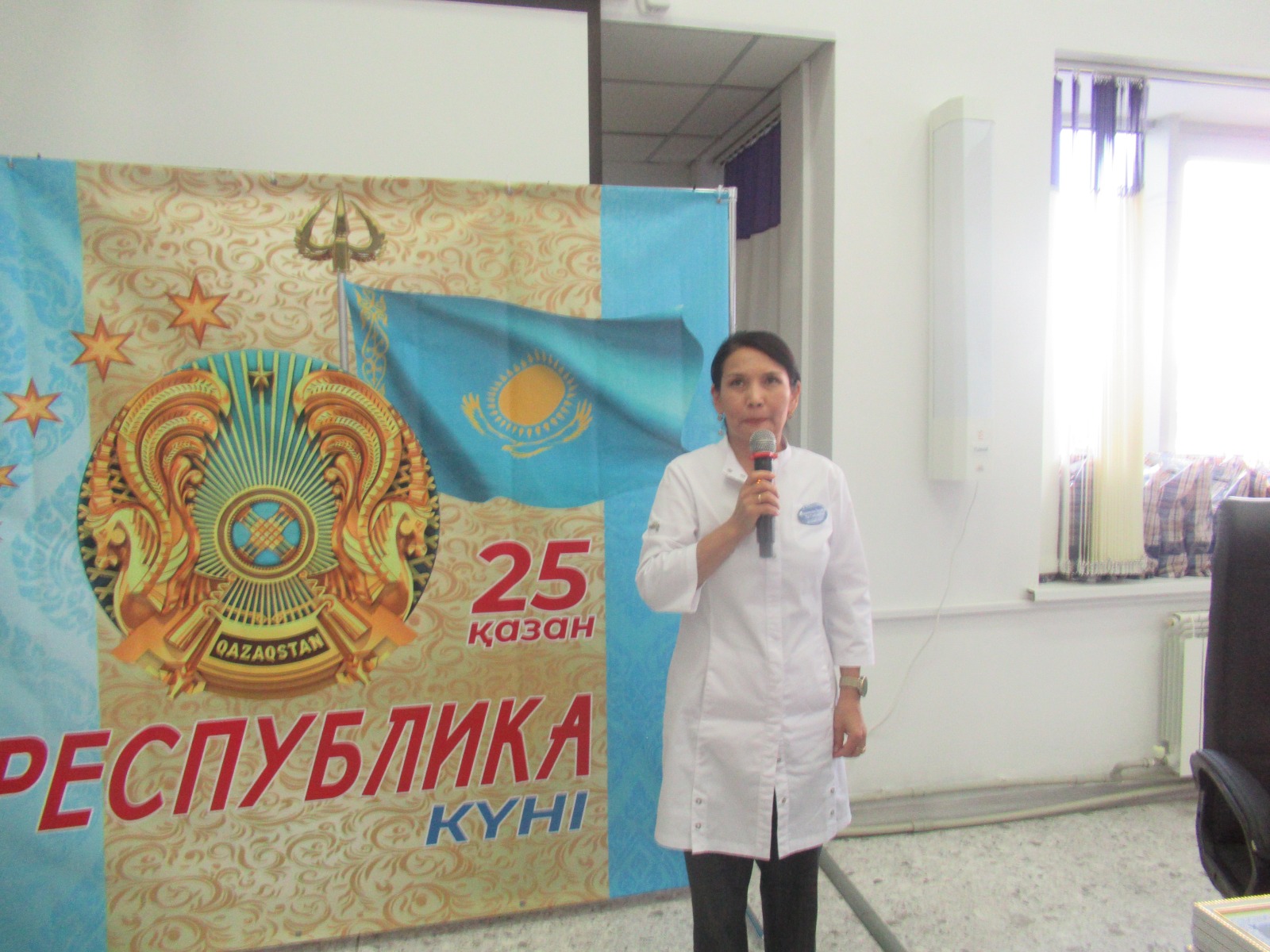 В связи с празднованием Дня Республики 24 октября 2024 года в КГП на ПХВ «Городской поликлинике №5» г.Тараз прошло торжественное мероприятие. Праздничное мероприятие с поздравительной речью открыла заместитель главного врача по медицинской части Маханова Перизат Куттыбаевна, заместитель главного врача по детству и родовспоможению Тулепбергенова Галима Алдабергеновна.