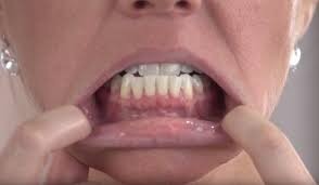 - Белые или красные пятна на деснах, языке, миндалинах или слизистой оболочке рта.