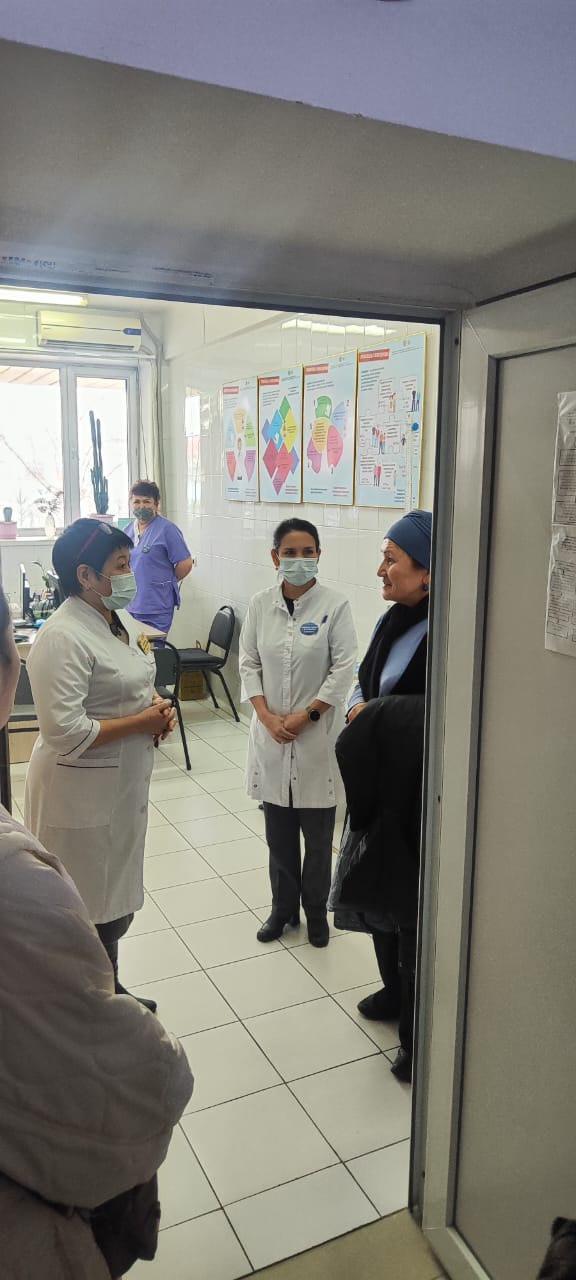 Проинформировали о первых шагах реализации пилотного проекта «Механизма информированного общественного мониторинга и обратной связи», а также были ознакомлены с реализуемыми проектами, с внедрением основы персонального приема медицинских сестер, универсальной прогрессивной модели патронажа, теоретической и практической работы социальных работников, психологов, школы здоровья