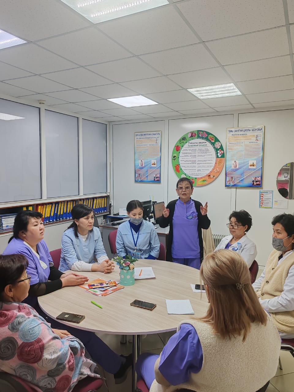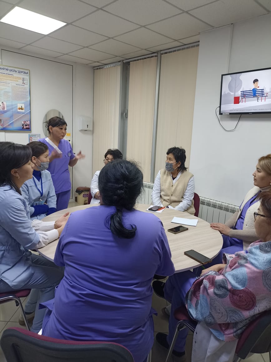 4 марта 2025 года в честь "Всемирного дня борьбы с ожирением" медсестра кабинета здорового образа жизни Клиева Ж. К., медсестра школы здоровья Ильясова С. К. городской поликлиники №5 провели круглый стол среди сотрудников поликлиники на темы «Профилактика ожирения», "Правильное питание" ответили на вопросы, показали видеоролик, раздали буклеты