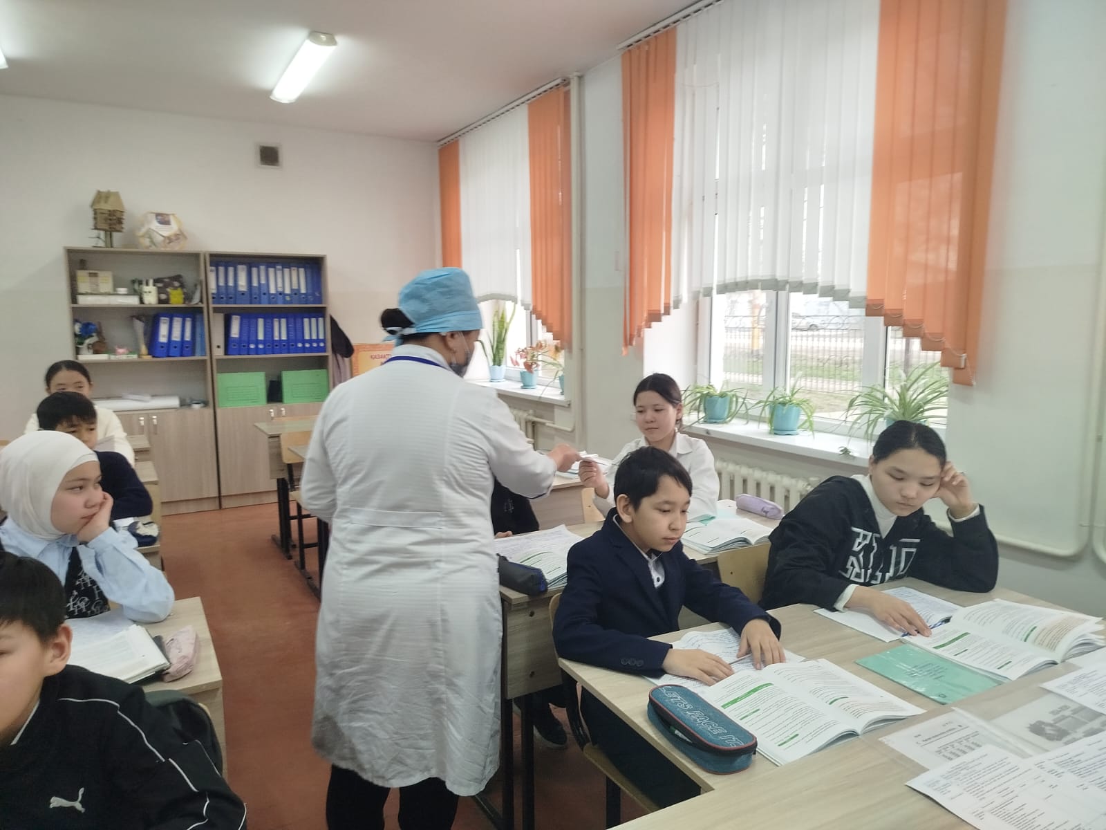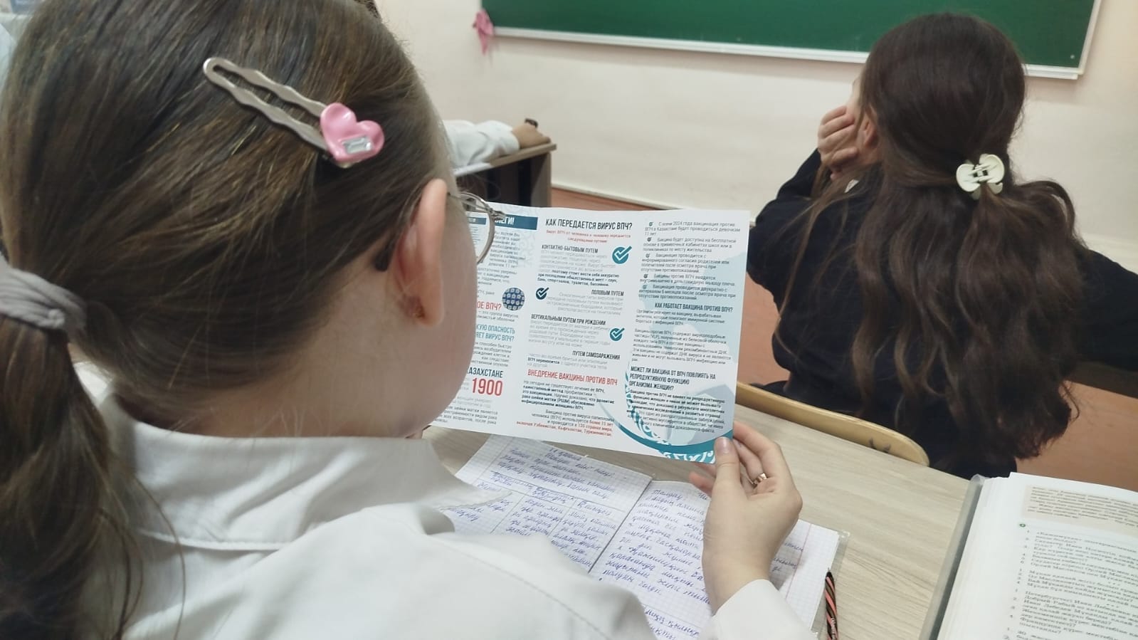 11 марта 2025 года медсестра средней школы №32 Молдатай Л.Ш. провела круглый стол среди школьников на тему «Профилактика вируса папилломы человека», ответила на вопросы, показала видеоролик, раздала буклеты.
