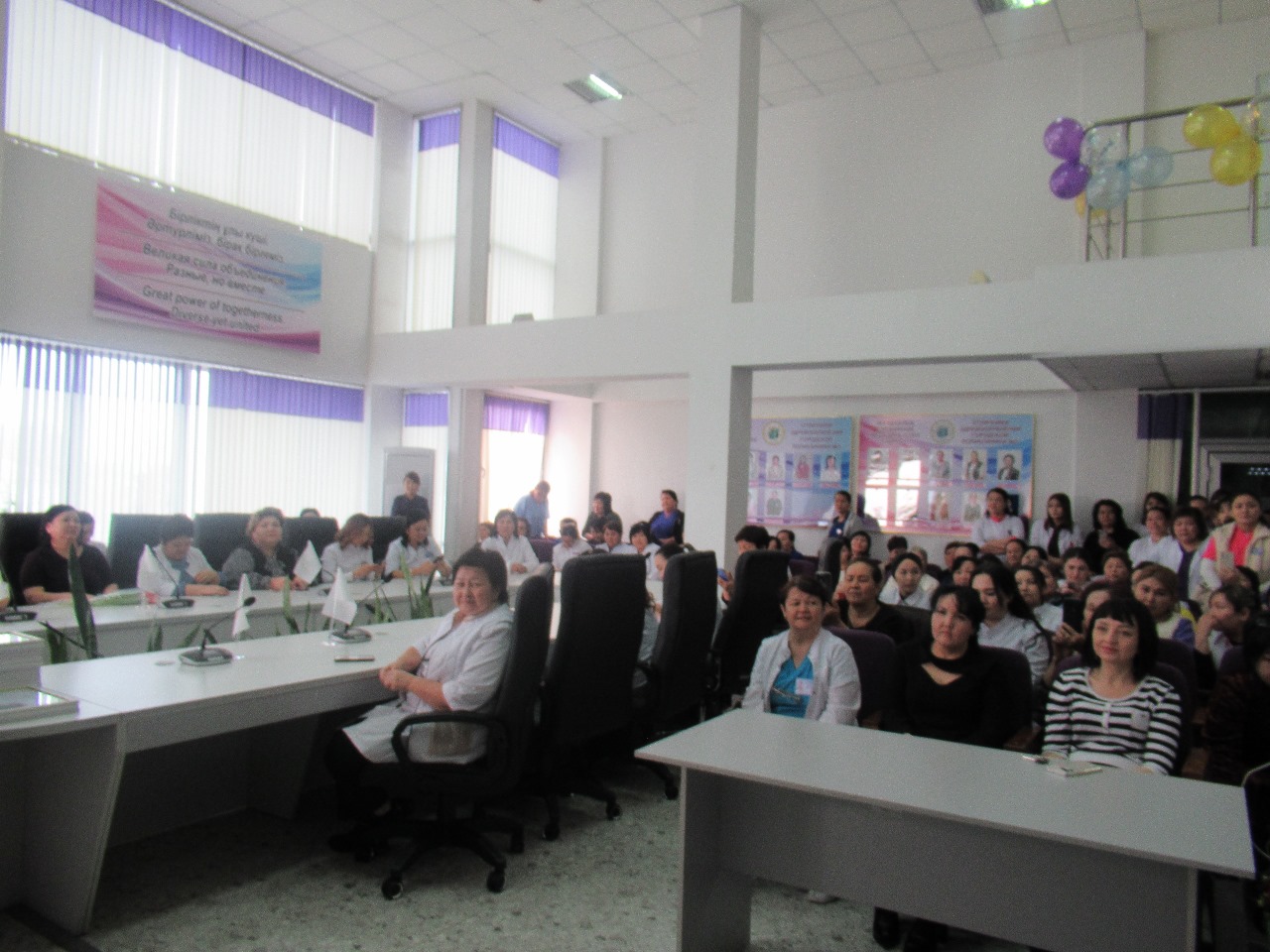 выступили главный врач поликлиники Сарсенова Д.А., заместитель главного врача по медицинской части Маханова П.К., заместитель главного врача по детству и родовспоможению Тулепбергенова Г.А., заместитель главного врача по контролю качества медицинских услуг Мурзакасымова Н.Ж., заместитель главного врача по экономическому и административно-хозяйственному обеспечению Саршаева П.Т., заместитель главного врача по сестринскому делу Москаленко Е.А., начальник службы управления персоналом отдела Сапарбекова З.Т.