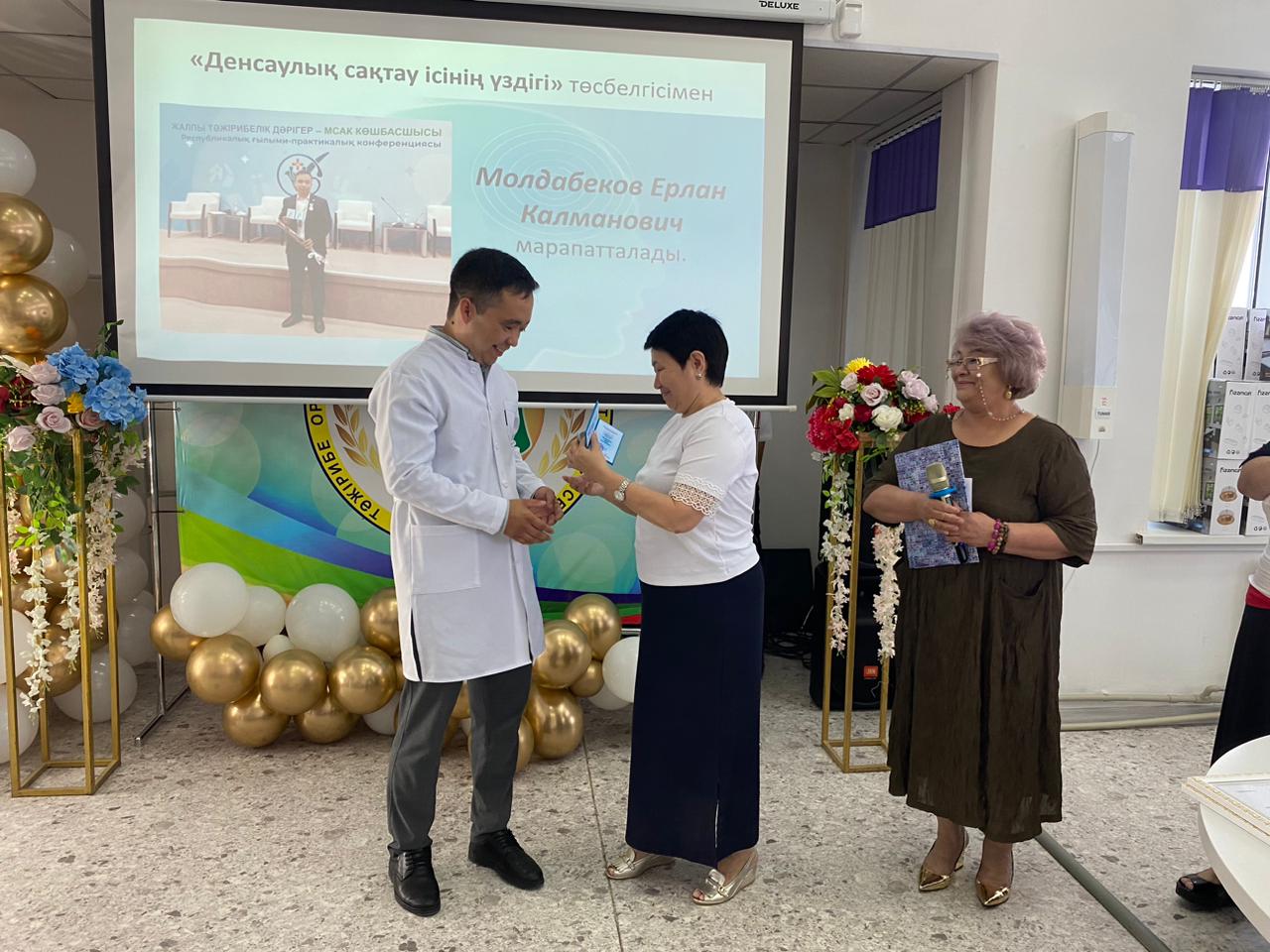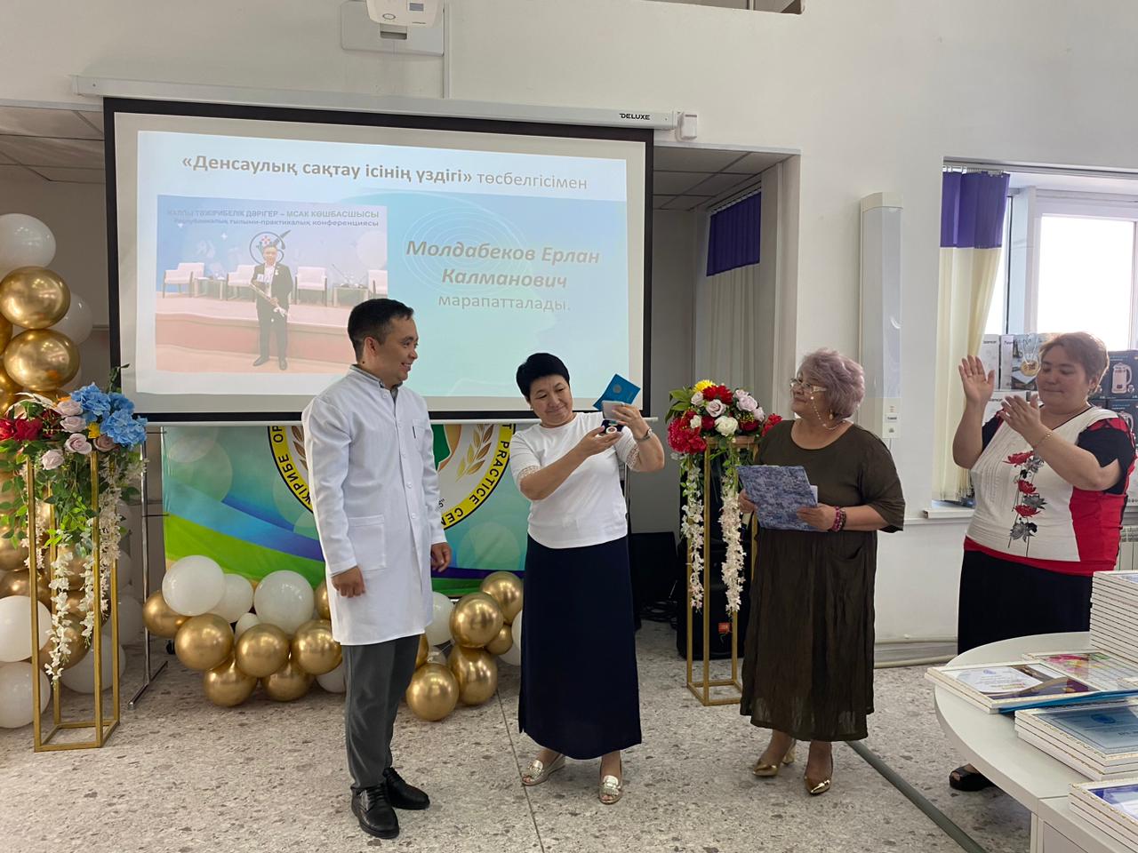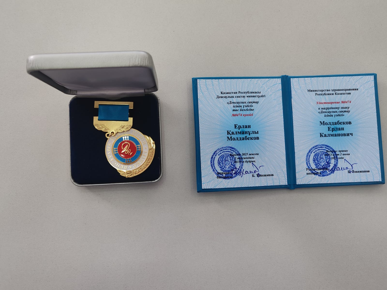 Қазақстан Республикасы Денсаулық сақтау министрлігі атынан «Денсаулық сақтау ісінің үздігі» ТӨСБЕЛГІСІМЕН Ерлан Қалманұлы Молдабеков марапатталды.