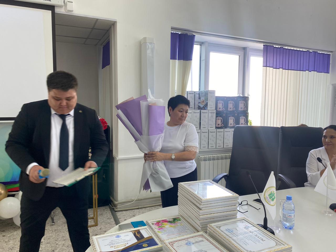 Еңбектері үшін емхана әкімшілігі мен кәсіподақ ұйымының төрайымы Г.С.Аширбаеваның атынан сыйлықтар табыс етілді.