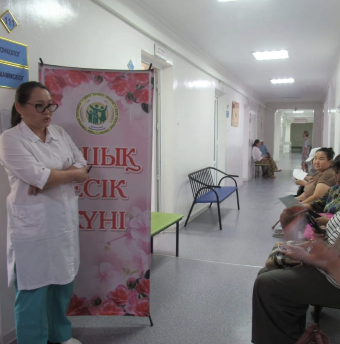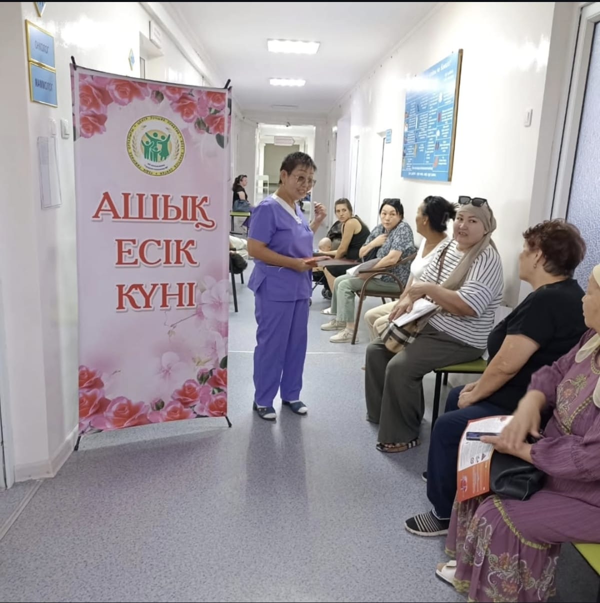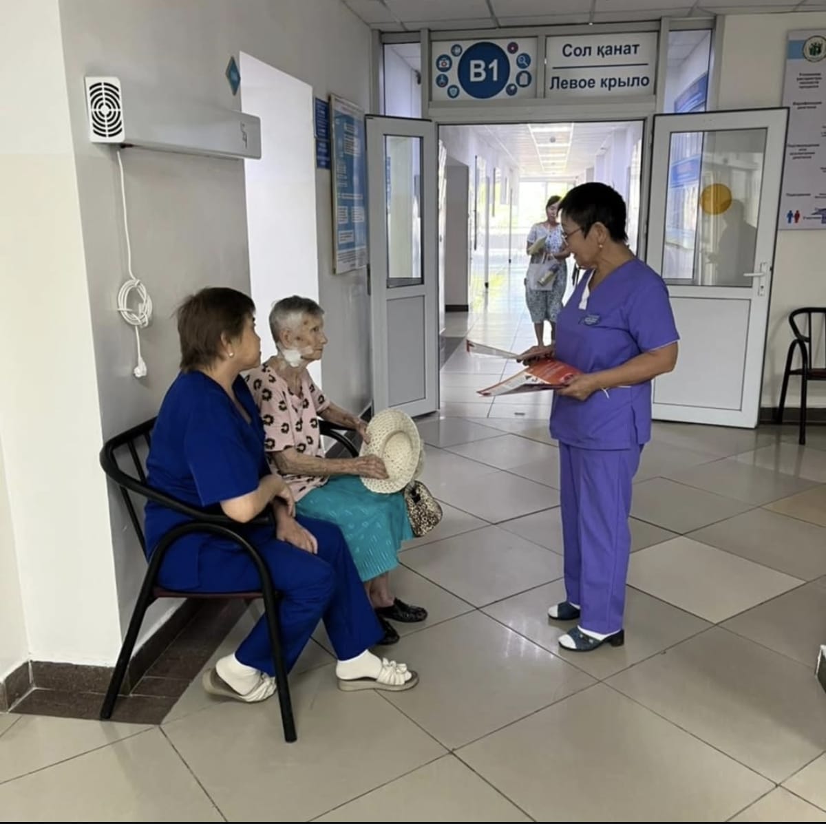 25 июля 2025 года в городской поликлинике N5 прошёл День открытых дверей на тему: "Профилактика саркомы", врач онколог Карымсакова Куралай Дуанбаевна, медсестра кабинета здорового образа жизни Клиева Жамыл, психолог Солағаева Моншақ провели разъяснительную работу среди пациентов. Ответили на интересующие вопросы, показали видеоролик, раздали буклеты