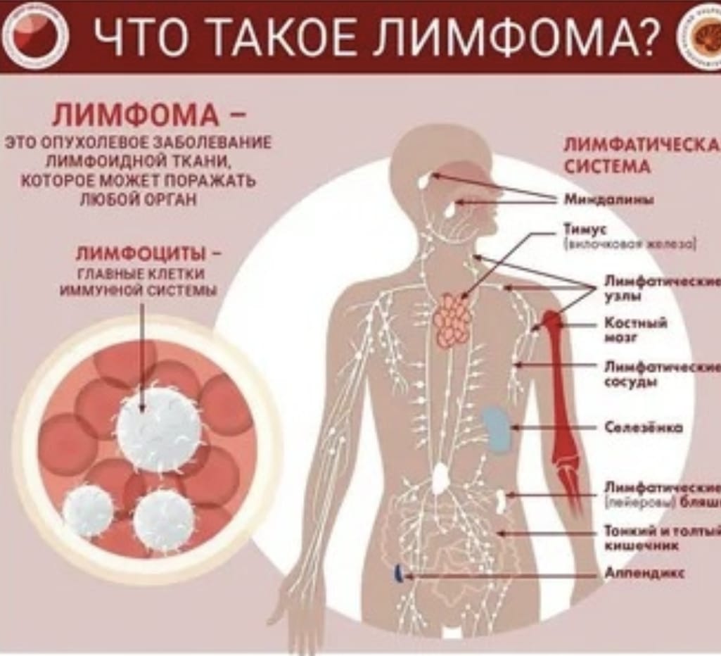 По мере распространения по организму атипичных лимфоцитов появляются более заметные признаки лимфомы: