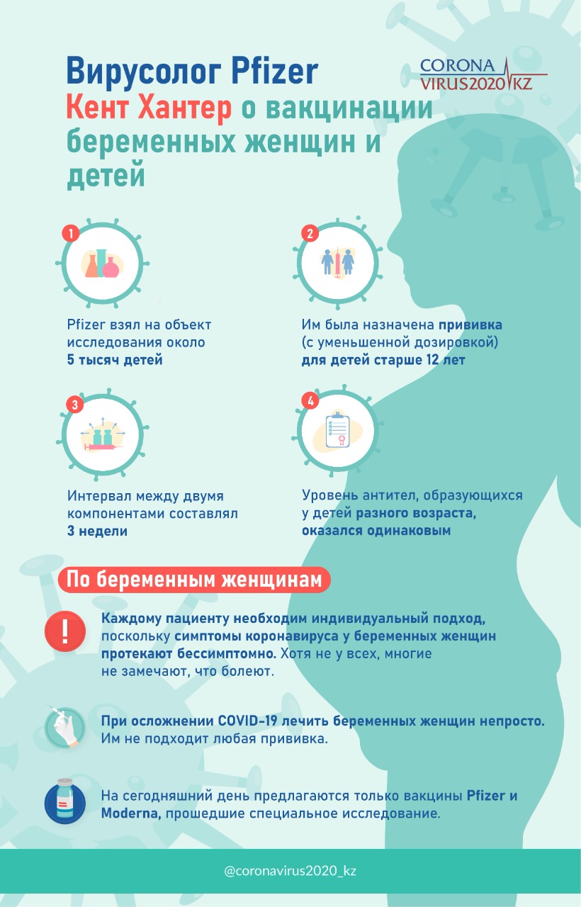 Ревакцинация беременных женщин против КВИ, ранее получивших первичный курс вакцинации против КВИ, проводится с использованием вакцины «Комирнати» (Phizer, США) в периоде с 16 до 37 недели беременности.