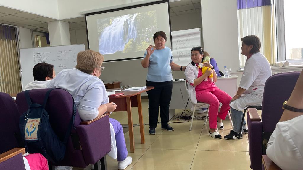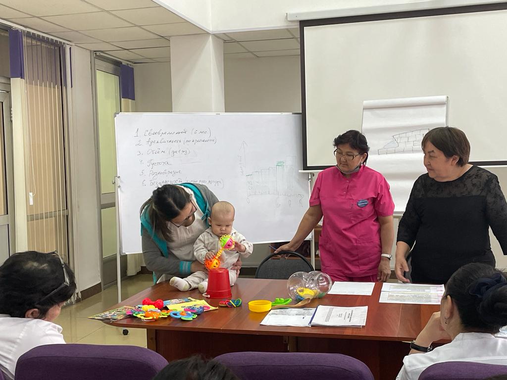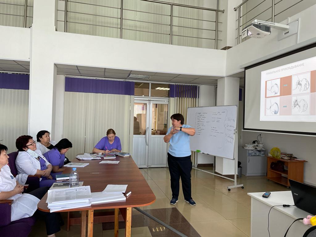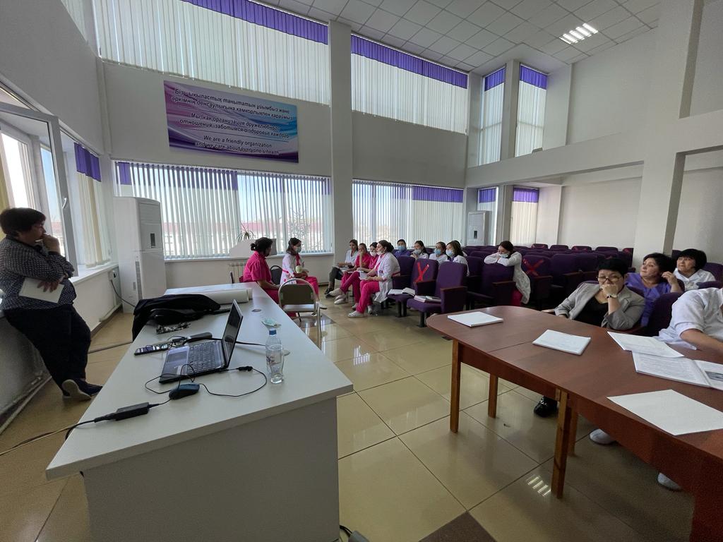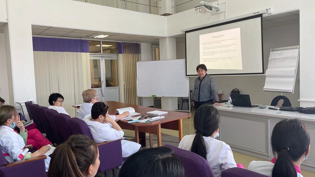 С 04.04-08.04.2022 года в ГКП на ПХВ "Городской поликлинике N5" был проведен информационно-практический тренинг "Универсальная прогрессивная модель патронажа беременных женщин и детей раннего возраста" для сотрудников поликлиники. Данное обучение провела национальный эксперт ЮНИСЕФ по внедрению универсальной прогрессивной модели патронажного обслуживания детей раннего возраста, консультант ВОЗ - Бабаева Баян Намановна. Были получены глубокие практические знания и навыки, которые в дальнейшем будут использоваться для улучшения качества работы.