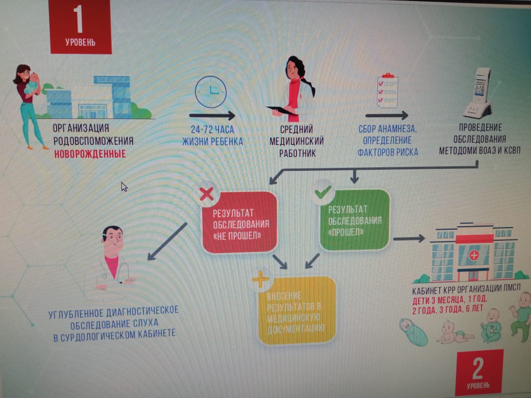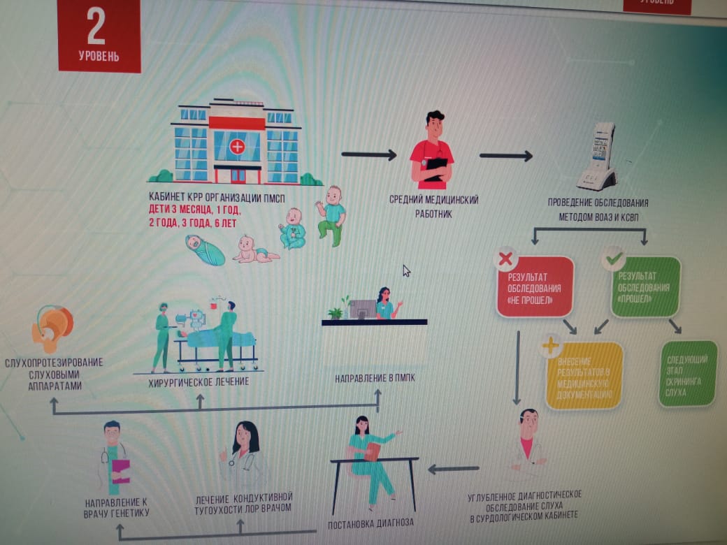 №5 қалалық емханада бала даму бөлмесінде есту қабілетінің төмендеуімен кереңдікті ерте анықтау мақсатында Қазақстан Республикасы Денсаулық сақтау министрінің 2021 жылғы 25 тамыздағы №ҚР ДСМ-91 бұйрығына сәйкес аудиологиялық скринингтік тексеру жүргізіледі. Скрининг 3 айлық, 1 жас, 2 жас, 3 жас, 6 жастағы балаларды қамтиды. Соңғы кезде балалар ара-сында есту қабілетінің жиі кездесуіне орай ата-аналар балаларын скринингтік тексеруден уақытылы өткізуіне шақырамыз. Сырқатты ерте бастан анықтап, асқынудың алдын алайық.