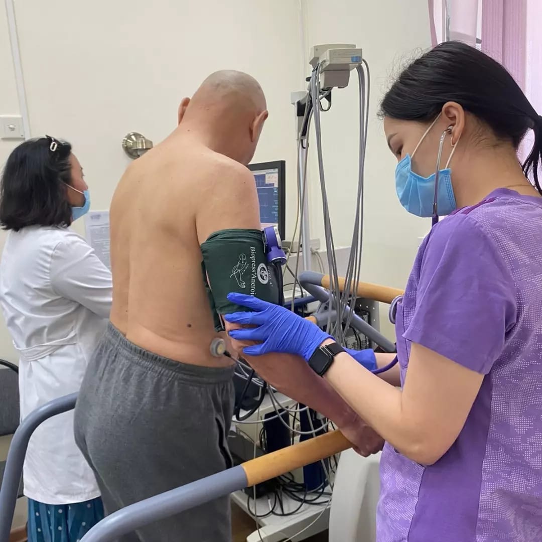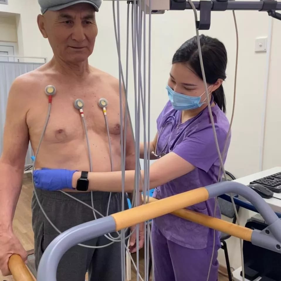 Тредмил-тест - это метод исследования состояния сердца, его ритма, а также показаний артериального давления при физической нагрузке, который применяется для контроля состояния больных после инфаркта миокарда, стентирования, аортокоронарного шунтирования. Исследование проводится только по назначению врача. Противопоказания: -ОИМ в течении первых двух суток; -нестабильная стенокардия с высоким риском осложнений; -острый миокардит или перикардит; -неконтролируемые гемодинамически значимые нарушения сердечного ритма; В городской поликлинике N5 данное исследование проводит врач высшей категории Нургалиева Б.Н