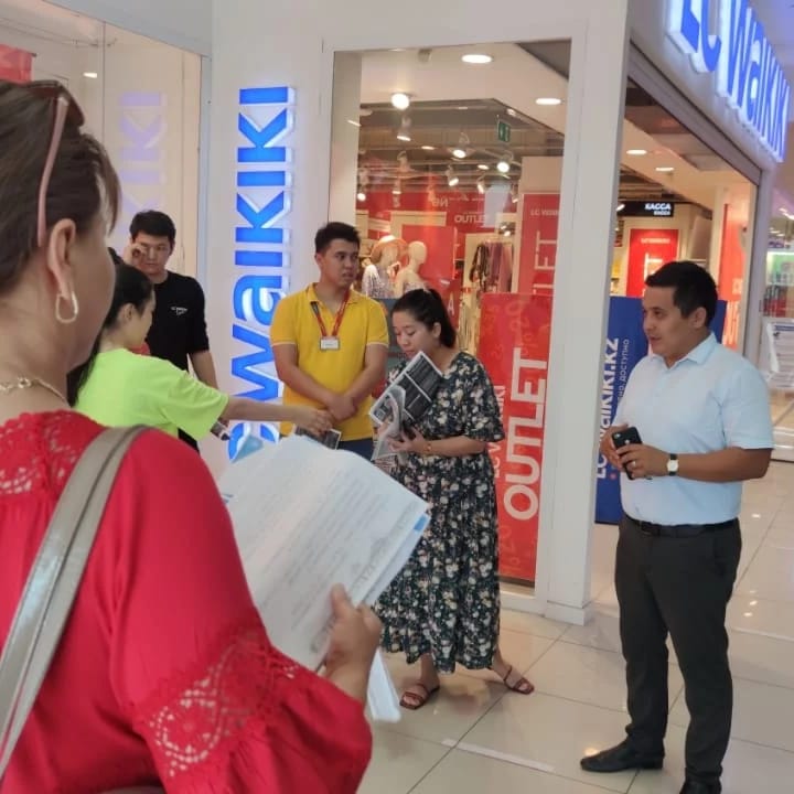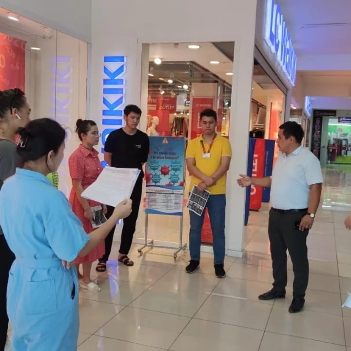 №5 қалалык емхананың мейіргерлері 2022 жылдың 28-29 шілде күндері Тауке хан көшесіндегі "Davmir" және "Zeta" сауда орталықтарында өзін-өзі жұмыспен қамтыған адамдар арасында міндетті әлеуметтік медициналық сақтандыру (ОСМС) туралы түсіндірме жұмыстарын жұргізіп, сұрақтарға жауап берді, буклеттер таратылды