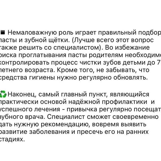 Очень важно приучить ребёнка к правильной гигиене полости рта (не все взрослые умеют чистить зубы корректно). Здесь, опять же, поможет консультация стоматолога.