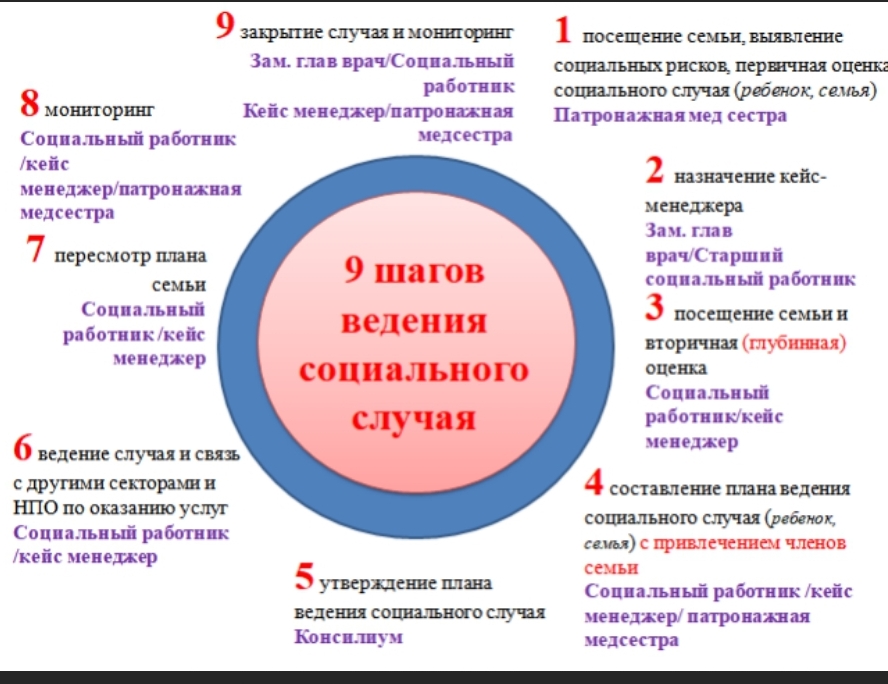 3. Комплексная оценка семьи, планирование индивидуального ухода для поддержки семьи и его реализация с привлечением других специалистов и услуг. Регулярный обзор плана ухода/помощи.