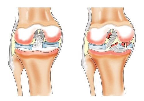 Разрыв передней крестообразной связки может произойти при действии силы, направленной вперед, на заднюю поверхность коленного сустава при согнутой и повернутой внутрь голени. Разрывы крестообразных связок могут сопровождаться отрывными переломами костных пластинок в местах прикрепления связок или переломом межмыщелкового возвышения. Что значительно затрудняет последующее лечение. Очень часто разрывы крестообразных связок происходят у спортсменов во время игры в футбол, при занятиях горнолыжным спортом, у борцов. Задняя крестообразная связка разрывается при резком разгибании голени в коленном суставе или при прямом ударе по передней поверхности голени, когда она согнута в коленном суставе.