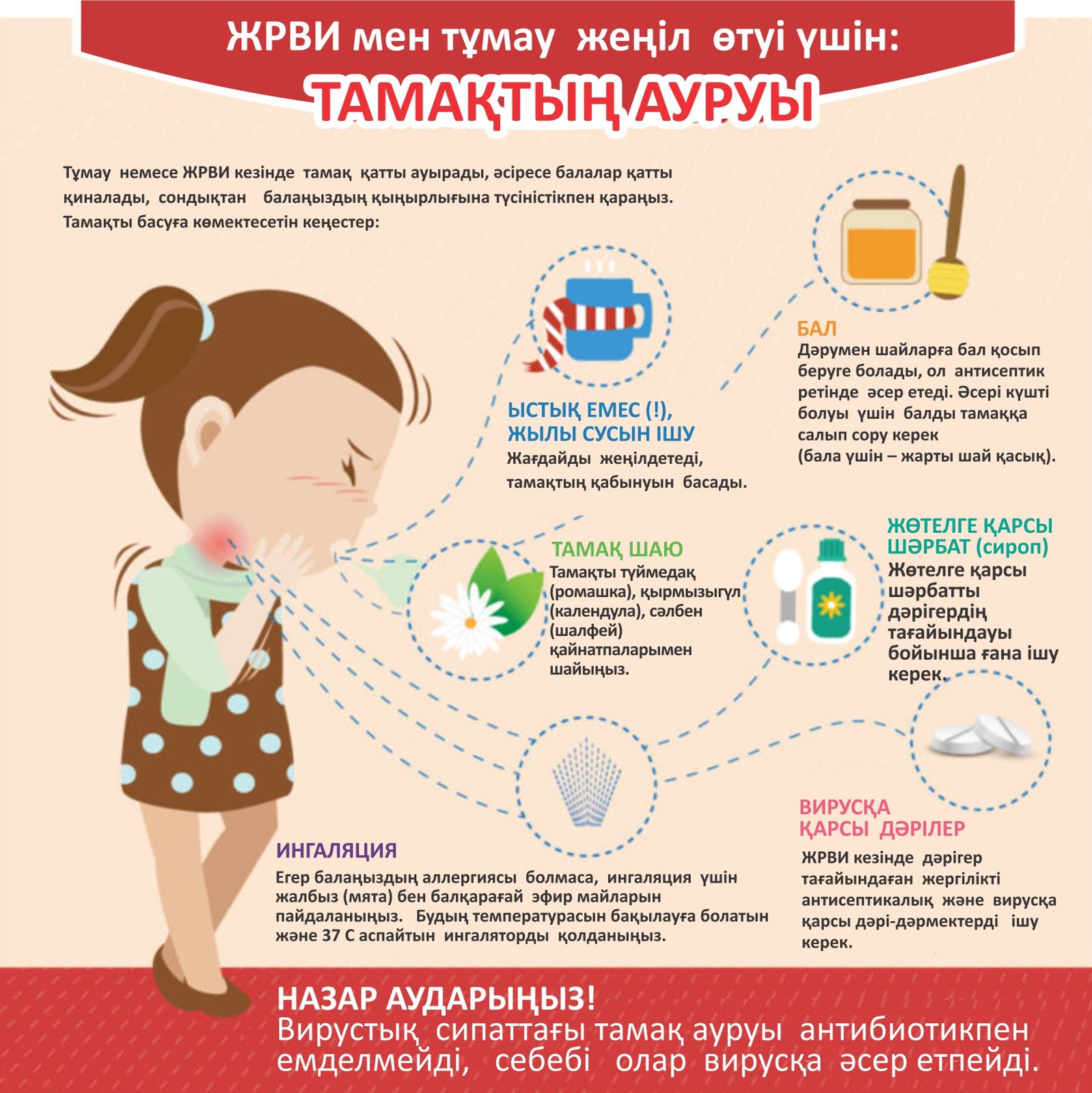 Жіті респираторлық вирустық инфекция (ЖРВИ) - әлемдегі тұмауды біріктіретін аурулардың ең кең тараған тобы тұмау, парагрипп, респиреспираторлық-синцитиалдық инфекция, риновирусты және аденовирусты инфекция, басқа жоғарғы тыныс алу жолдарының талаурамалы қабынбалары. ЖРВИ-мен балалар және иммундық жүйесі әлсіреген адамдар жиі ауырады. Иммунитет ауырғаннан кейін тұрақты емес, сондықтан әр адам жыл сайын 3-4 және одан да көп ауруы мүмкін. ЖРВИ әдетте жіті, күтпеген жерден басталады. Жұқтыру мен ауру арасында орташа алғанда шамамен 2 күн өтеді. Ауырар алдында адамды мыналар мазалау мүмкін: шаршау сезімі, әлсіздік, ашуланшақтық. Бұдан әрі бұл белгілер көбейеді, бас ауырады, қатты әлсіздік, бұлшық еттер сырқырайды, дене қызуы жоғарлауы мүмкін, терлегіш болады. Тұмау, тамақтың ауруы, жөтел пайда болуы мүмкін. Кейбір жағдайларда тыныс алу жолдарының зақымдануымен конъюнктивит-көздің зақымдану белгілері болуы мүмкін. Диагностика және емдеу. ЖРВИ диагнозын терапевт қараған және науқастан сұраған кезде қояды. Сонымен бірге дәрігер несеп пен қан талдауын тағайындауы мүмкін. ЖРВИ емдеу әдетте дәрігердің бақылауымен үй жағдайында жүргізіледі. Пациентті ауруханаға тек аса ауыр жағдаятта немесе шиеленген жағдайда жібереді. Науқас міндетті түрде төсек тартып жатуды қадағалауы және барынша сұйық зат ішуі керек, жылы шай мен морс ішкені жақсы. Дене қызуы жоғары болғанда қызу басатын дәрі-дәрмектерді, қажеттілігіне қарай тұмауға қарсы дәрілерді немесе жөтелге қарсы препараттарды қолдануы керек. ЖРВИ кезінде тыныс алу гимнастикасы мен дәрумендер терапиясы жақсы әсер етеді. ЖРВИ мен тұмауды алдын алу: Тұмауды алдын алудың 3 түрі бары белгілі: * Екпелік алдын алу; * Дәрімен алдын алу (вирусқа қарсы дәрілер); * Жеке және қоғамдық гигиена (ақпараттандыру жолымен) ережесін қадағалау.