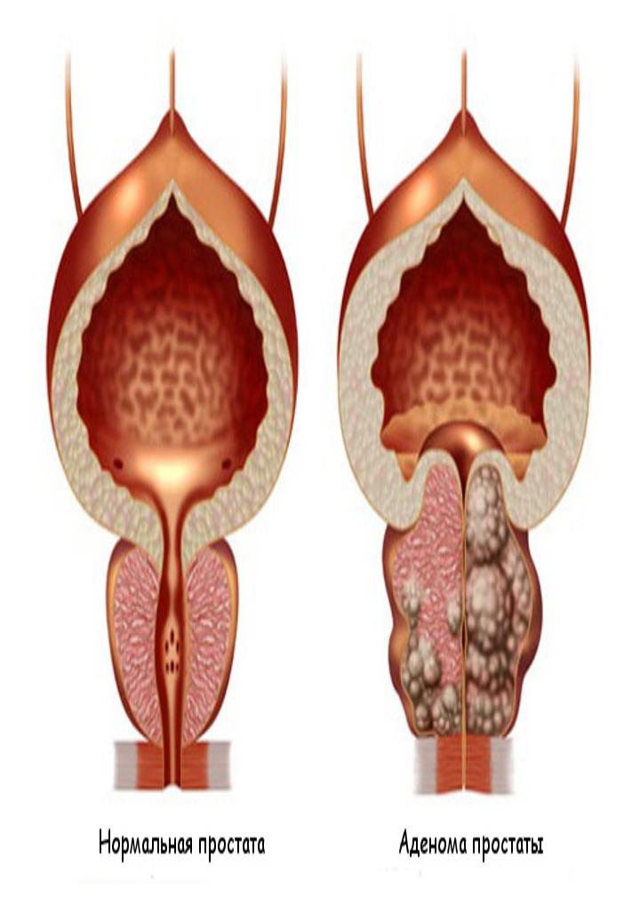 Аденома предстательной железы – доброкачественная опухоль простаты, обусловленная гиперпластическими изменениями в парауретральных железах (расположенных в простатическом отделе уретры). Патология встречается у каждого четвертого мужчины старше 40 лет и у каждого второго старше 50. Заболевание не является онкологическим, однако термин «доброкачественная» не исключает возможности перерождения опухоли в раковую. О заболевании При аденоме простаты ее внутренние клетки постепенно увеличиваются и разрастаются, сдавливая уретральный канал. Из-за этого нарушается процесс мочеиспускания. Со временем застойные явления в мочевом пузыре становятся постоянными, что ведет к острой или хронической задержке мочи, а также повышает риск цистита, уретрита, пиелонефрита, почечной недостаточности. Виды и стадии развития аденомы простаты Аденома предстательной железы проходит три последовательные стадии развития. Компенсированная. Сужение уретрального протока компенсируется гипертрофией мускулатуры пузыря. Изменяется динамика мочеиспускания, однако серьезных нарушений нет. Субкомпенсированная. Из-за дистрофических изменений в пузырных стенках, увеличивается объем остаточной мочи, наблюдаются нарушения в функционировании почек. Декомпенсированная. Мочевой пузырь растянут, наполнен мочой, однако полноценное опорожнение невозможно. Прогрессирует хроническая почечная недостаточность. В зависимости от расположения новообразования, выделяют 3 вида аденомы: ретригональная: расположена под треугольником мочевого пузыря (область, ограниченная выводными отверстиями мочеточников сверху и входом в мочеиспускательный канал снизу); подпузырная: увеличивается в сторону прямой кишки; внутрипузырная: рост происходит в сторону мочевого пузыря. Также выделяют многоочаговую форму патологии, при которой внутри железы развивается сразу несколько узлов. Соответственно, рост опухоли может происходить сразу в нескольких направлениях. Симптомы и признаки аденомы простаты у мужчин На ранних этапах развития заболевания наблюдаются легкие нарушения мочеиспускания: учащаются дневные позывы; мужчина встает в туалет ночью 1-2 раза; перед утренним мочеиспусканием приходится напрягать пресс; струя мочи вялая (почти вертикальная); возникают императивные (внезапные) позывы с выделением небольшого объема мочи. На 2-й стадии в пузыре постоянно задерживается 50 и более мл мочи. Пациент страдает от частых позывов, объем выделяемой урины резко уменьшается, учащаются ночные мочеиспускания. На протяжении всего процесса мужчине приходится напрягать мышцы живота. Выделение мочи становится прерывистым или волнообразным. Иногда наблюдается капельное подтекание между актами мочеиспускания. Застой в пузыре ведет к присоединению инфекции, так развивается цистит, уретрит или пиелонефрит.