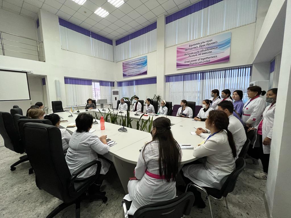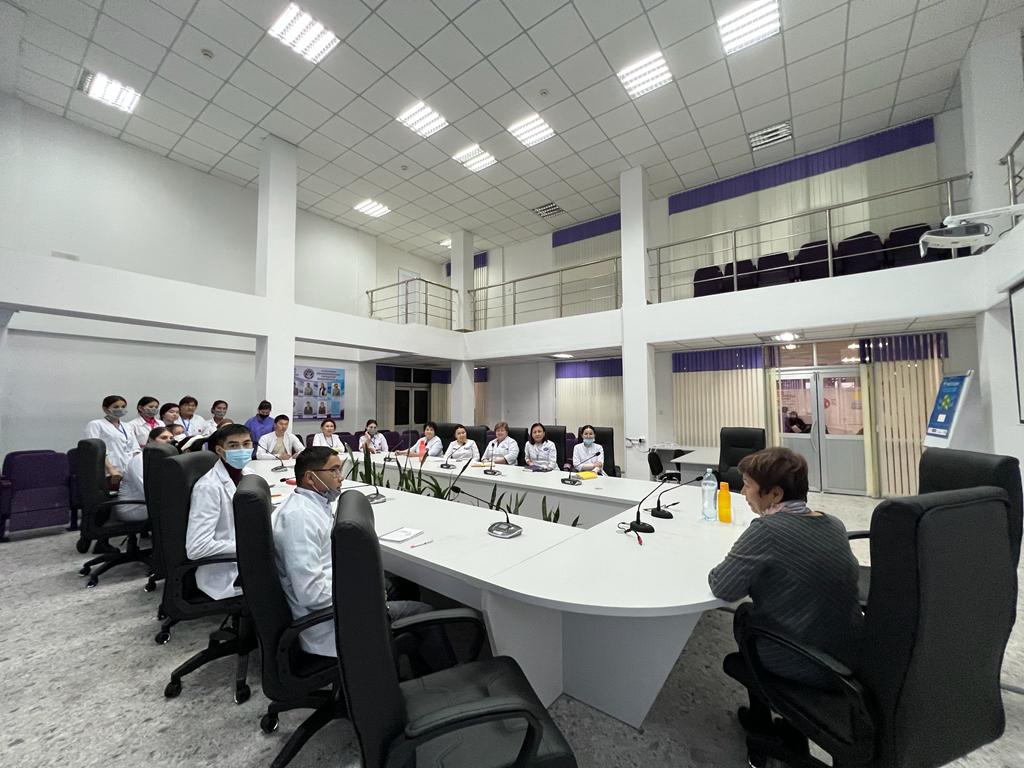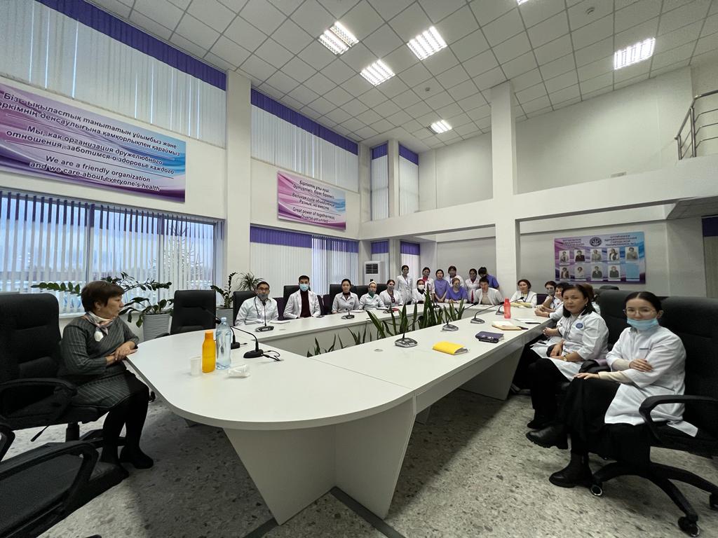 "Жаңа туған нәрестенің сарғаюы!" тақырыбында ЖОКБА жаңа туылған нәрестелердің патологиясы бөлімінің бөлім меңгерушісі Хамбарова Шынар Жолсеитовна N5 қалалық емхана дәрігерлері мен мейіргерлері арасында семинар жүргізді