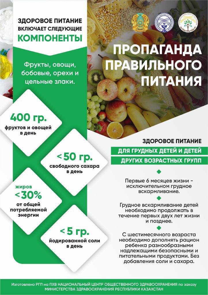 Здоровое питание – это ограничение жиров, соли и легкоусвояемых углеводов, увеличение в рационе фруктов, круп, изделий из муки грубого помола, бобовых, нежирных молочных продуктов, рыбы, постного мяса. Конечно, нужна умеренность в еде, четырехкратный прием пищи самый оптимальный.