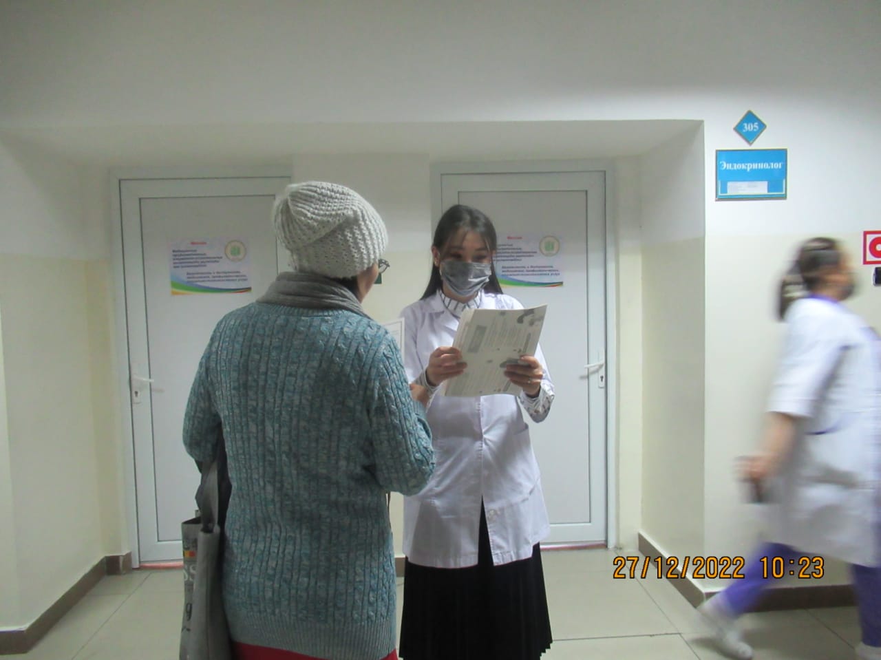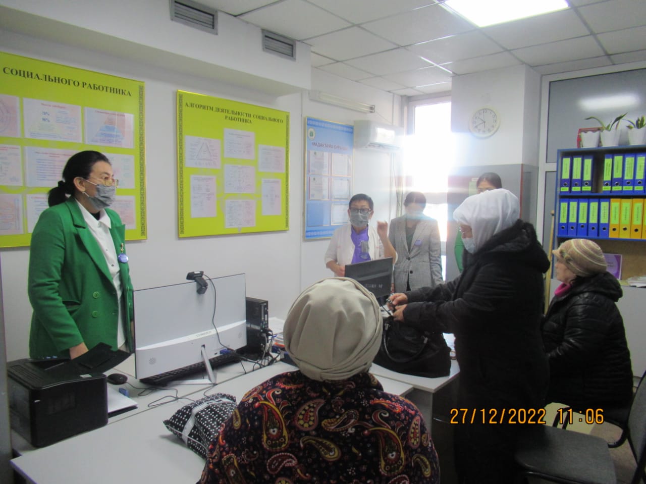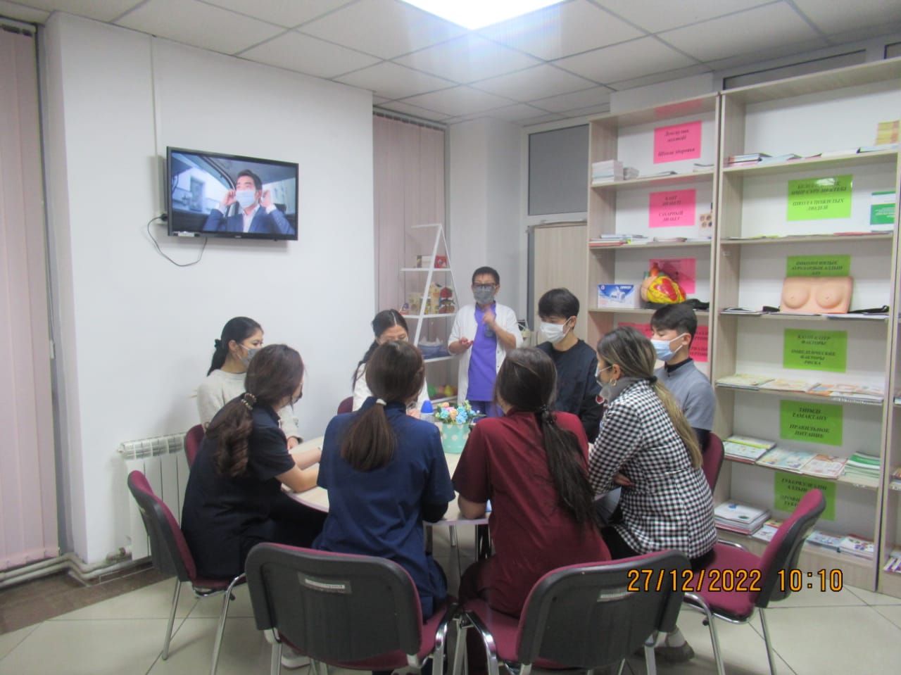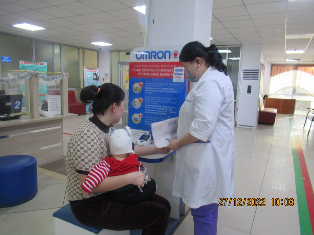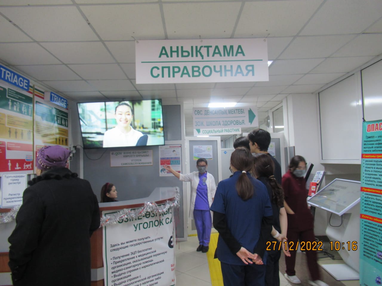 «БЕЙБІТШІЛІК пен КЕЛІСІМ» жобасын іске асыру бойынша іс-шаралар жоспары бағыты: «ӘЛЕУМЕТТІК-ТҰРМЫСТЫҚ МӘСЕЛЕЛЕРДІ ШЕШУ ЖӘНЕ БИЗНЕСТІ ДАМЫТУ» тобының іс шаралар жоспарына сай 2022 жылдың 27 желтоқсан күні Тараз қаласы «№5 қалалық емханасында «Денсаулық мектебінің сабақтары» тақырыбында Ашық есік күні өтті. Бұл күні емханаға келген тұрғындарымыз: 1) 110,111 бөлмелерінде сағат 09.00-12.00 скринингтен өтіп, қан қысымын, көзішілік қысымды, қант деңгейін, бойды, салмақты өлшеп, Кетле массасының индексі шығарылды. 2) сағат 09.00-12.00 1) «Артериялық гипертензия және жүректің ишемиялық ауруы» денсаулық мектебі 2) «Қант диабеті» денсаулық мектебі 3) «Өкпенің созылмалы обструктивті ауруы» денсаулық мектебі 4) «Белсенді ұзақ өмір сүру» денсаулық мектебі 5) «Инсульттің алдын алу» денсаулық мектебі 6) «Мінез-құлық қауіп факторлары» денсаулық мектебі 125 бөлмеде денсаулық мектебінің жауапты мейіргерілерінен кеңес алып, анкета толтырылды, видео көрсетілді, буклеттер таратылды 101 бөлмеде психологтың және 128 бөлмеде әлеуметтік қызметкер мамандарынан консультациясын өте алды.