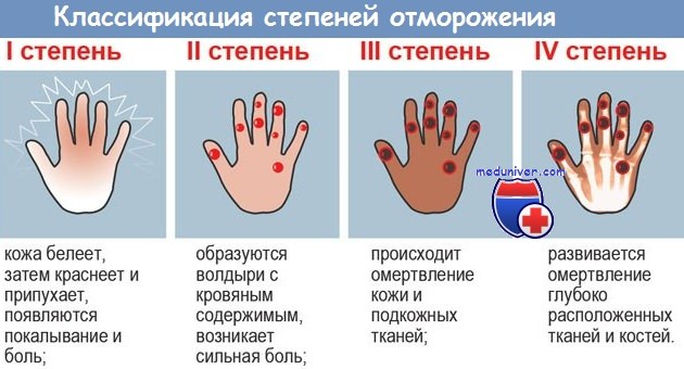 Менее отмороженных участках, где имеется отморожение III—II степени. Отсутствие пузырей при развившемся значительно отёке, утрата чувствительности свидетельствуют об отморожении IV степени