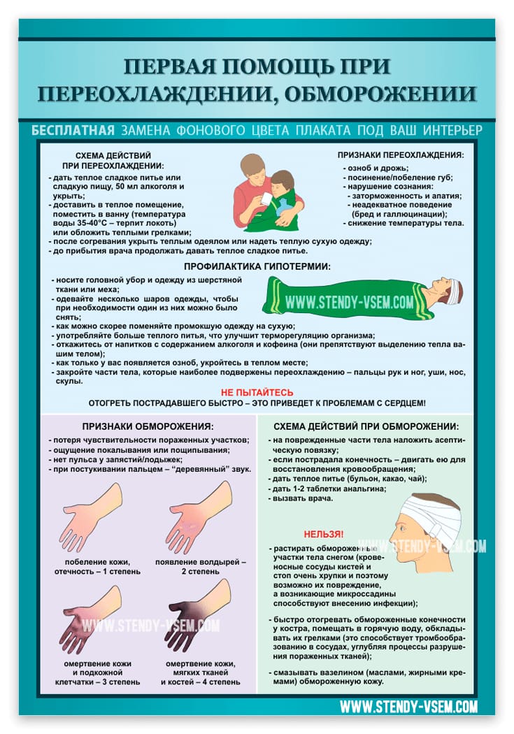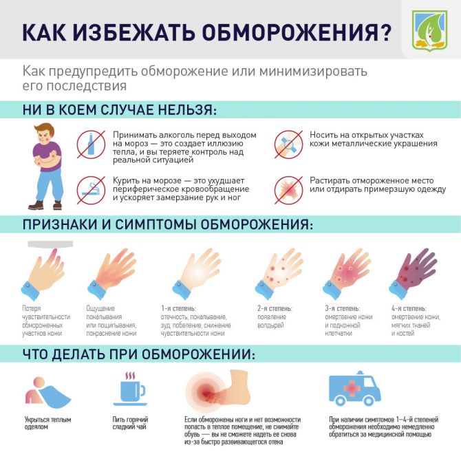 При обморожении пальцев, ушных раковин или других частей тела следует принять следующие меры: