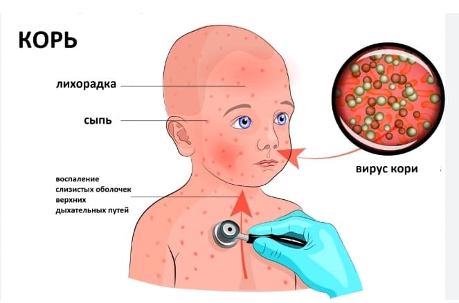 Корь — это инфекционное заболевание. Младенцы в возрасте до 3 месяцев корью не болеют, если мать болела корью или получила своевременно прививки против этой инфекции.