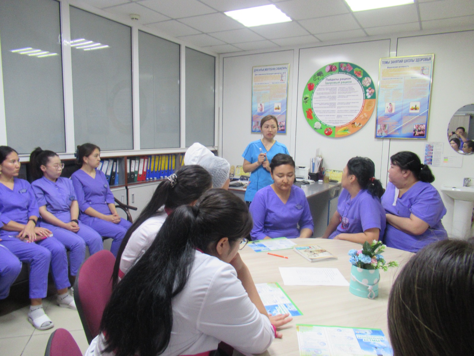 2024 жылдың 24 мамыр күні №5 қалалық емханада 1 ОДО бөлімінің меңгерушісі Айгерім Қошанқызы Тойлыбаева қызметкерлер мен студенттер арасында «Бронх демікпесінің алдын алу» тақырыбында семинар өткізді. Бронх демікпесі кезінде дәрі-дәрмек пен ингаляторларды қалай қолдану керектігін түсіндіріп, көрсетті, сұрақтарға жауап берді және буклеттер таратылды.