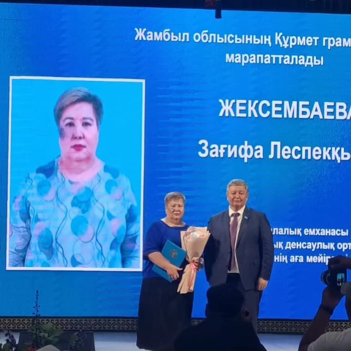 ЖЕКСЕМБАЕВА ЗАҒИФА ЛЕСПЕКҚЫЗЫ Жамбыл облысының Құрмет грамотасымен марапатталды.