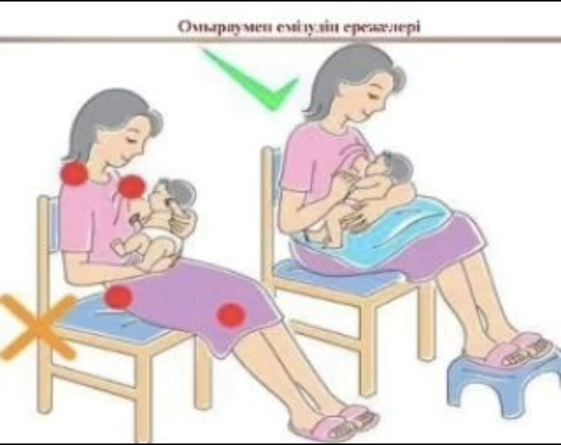 МАҢЫЗДЫ: ана мен балаға ыңғайлы позада емізу - баланың беті анасының денесіне бұрылып, басы, иығы мен жамбасы бір сызықта болуы керек.