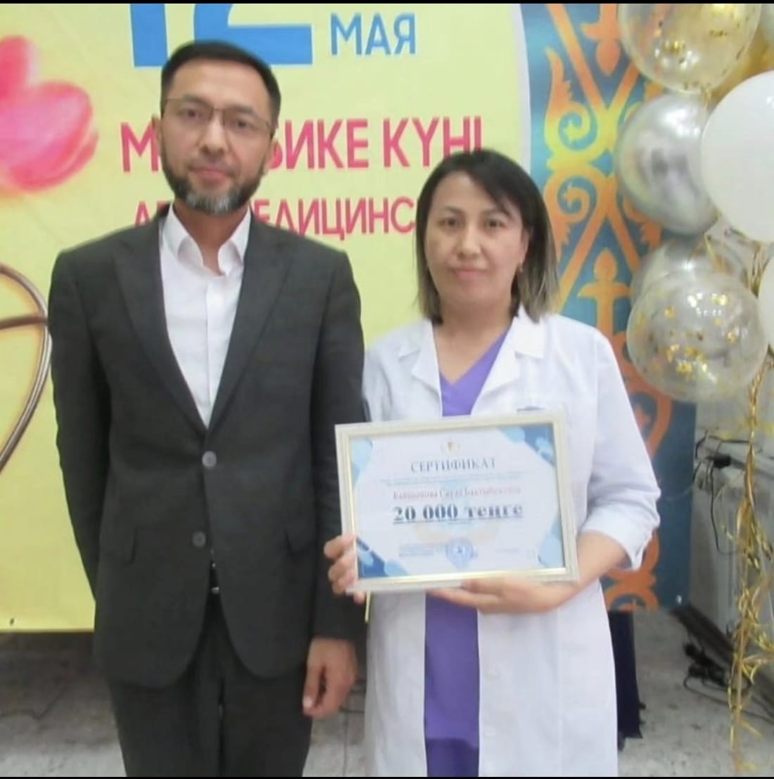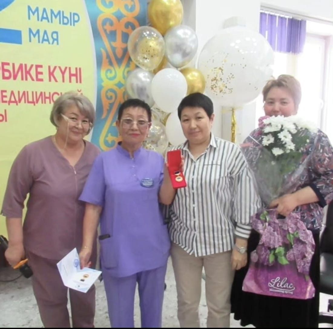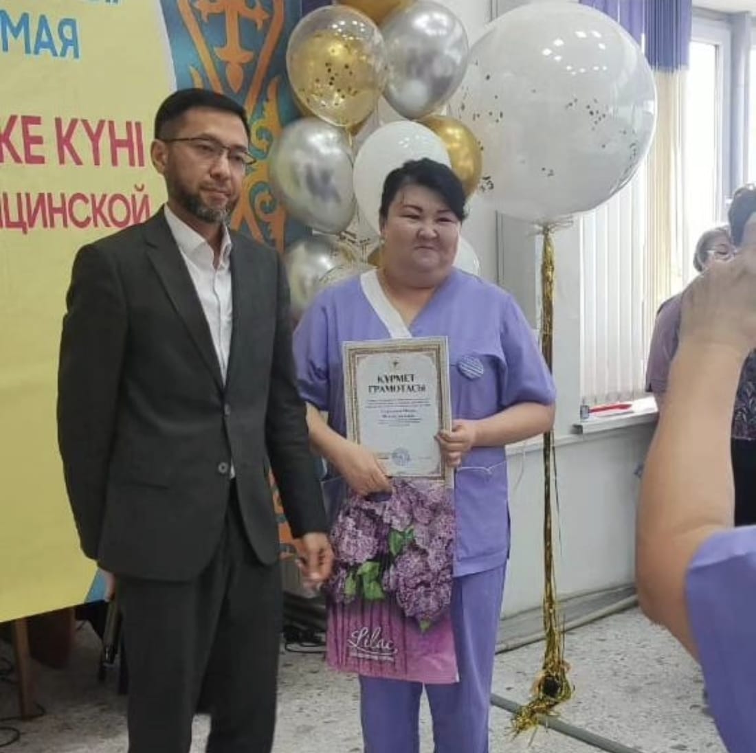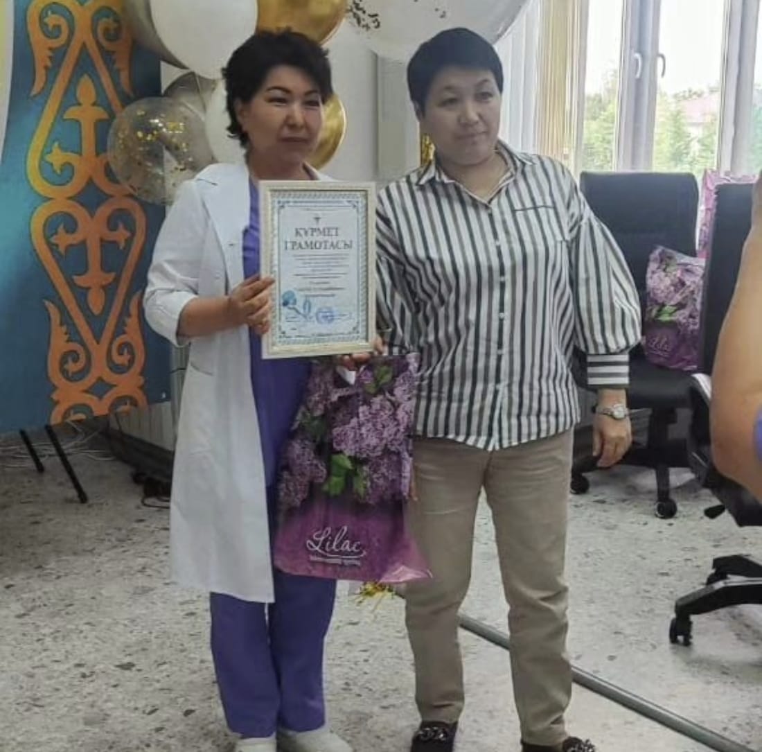 Көп жылғы адал еңбегі және мейірбике ісін дамытуға қосқан зор үлесі үшін бас дәрігердің мейірбике ісі жөніндегі орынбасары Елена Анатольевна Москаленко «SENIM» үздігі төсбелгісімен, ал «Шарапат» төсбелгісімен салауатты өмір салты бөлмесінің мейірбикесі Ж.К.Клиева марапатталды.