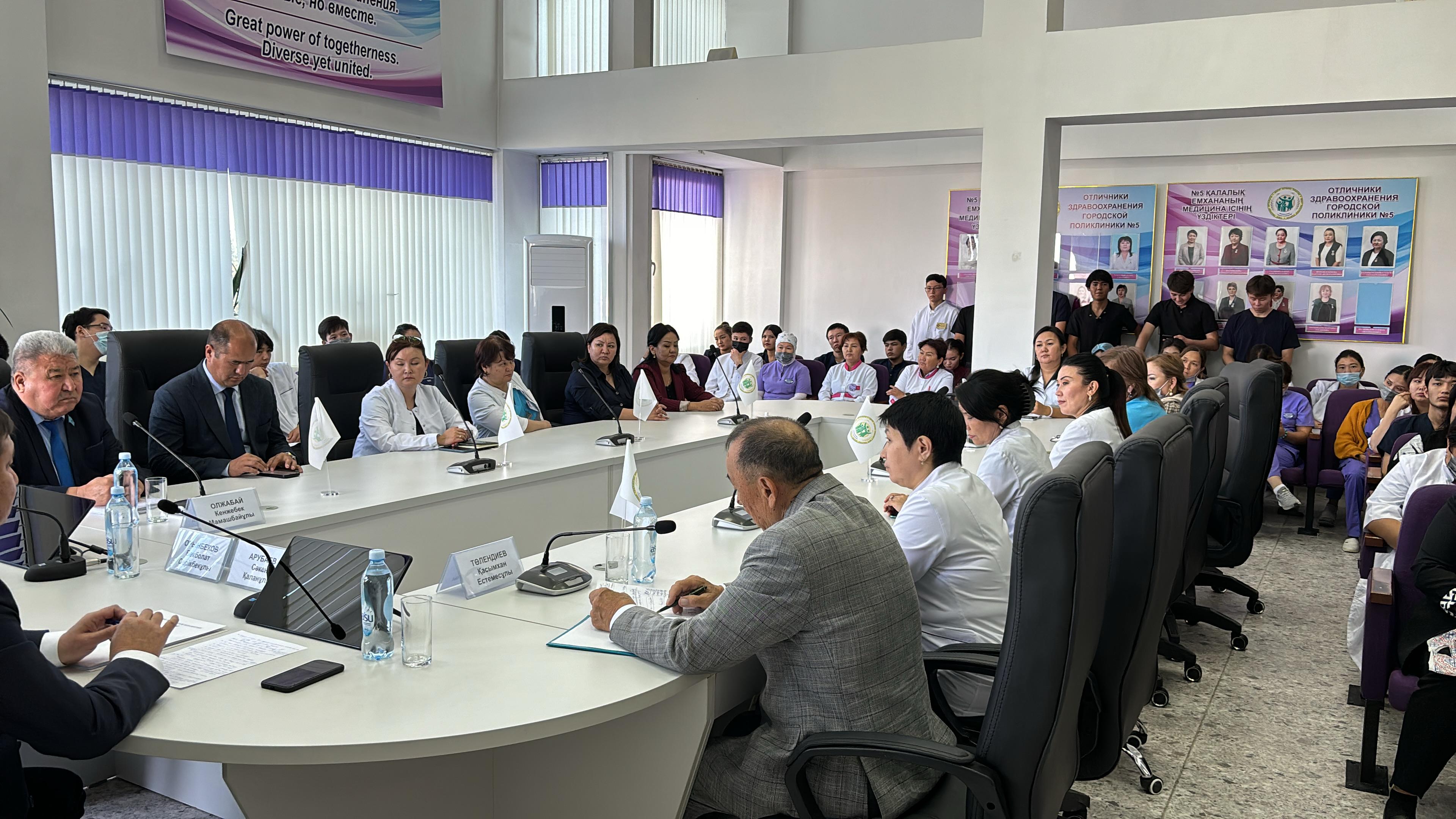 2024 жылдың 1 қазан күні АЭС салуды қолдау бойынша облыстық халықтық штаб мүшесі, Кенжебек Олжабай – қалалық мәслихаттың төрағасы, Орынбеков Бекболат Серікбекұлы Жамбыл облысынан Қазақстан Республикасы Парламенті Сенатының депутаты, Арубаев Сәкен Қаланұлы Жамбыл облысынан сайланған Аграрлық мәселелер, табиғатты пайдалану және ауылдық аумақтарды дамыту комитетінің мүшелері Тараз қаласы №5 қалалық емханада кездесу өткізді