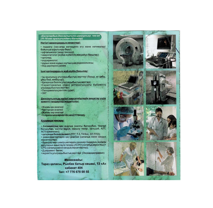 - «Балалардың денсаулығына қамқорлық» чек-ап (6 жастан 10 жасқа дейінгі балалар)