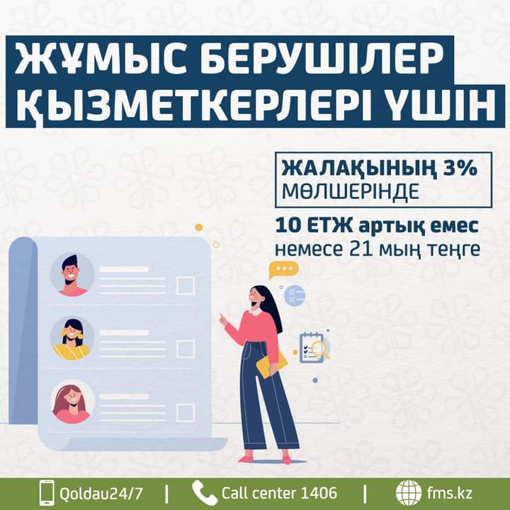 ✅ ЖҰМЫС БЕ-РУШІЛЕР ҚЫЗМЕТКЕРЛЕРІ ҮШІН - жалақының 3% мөлшерінде ❗10 ЕТЖ артық емес немесе 21 мың теңге