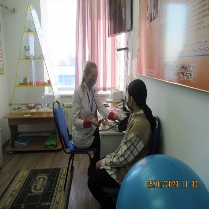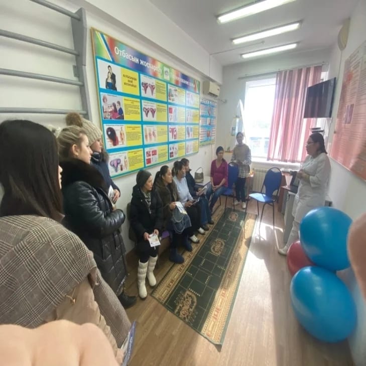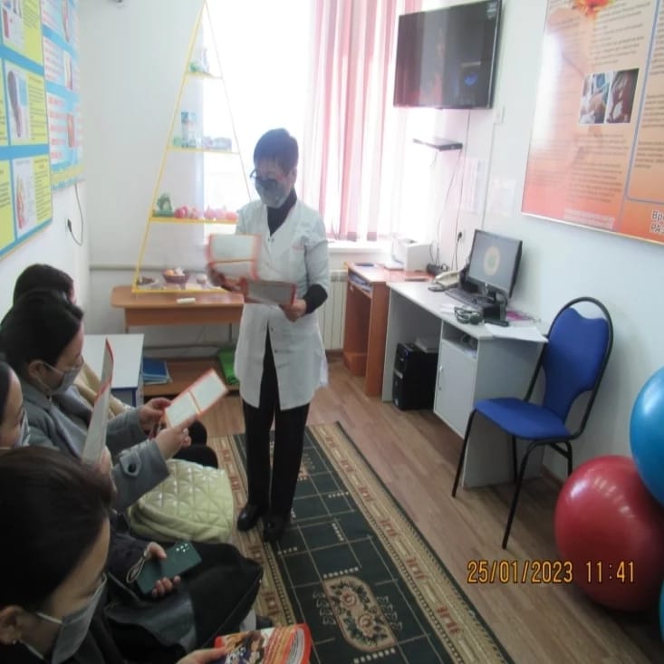 №5 қалалық емханада 2023 жылдың 25 қаңтар күні жас және болашақ аналар арасында дәрігер акушер гинеколог А.Б.Қалымбетова, жанұяны жоспарлау бөлмесінің акушеркасы А.Қасымова және салауатты өмір салтын насихаттау бөлмесінің мейіргері Ж.Клиева «Жатыр мойны обрының алдын алу» тақырыбында дөңгелек үстөл өткізіп, дәріс оқып, сұрақтарға жауап беріп, қан қысымын өлшеп, бейнеролик көрсетіліп, буклеттер таратылды